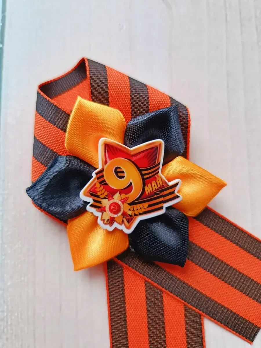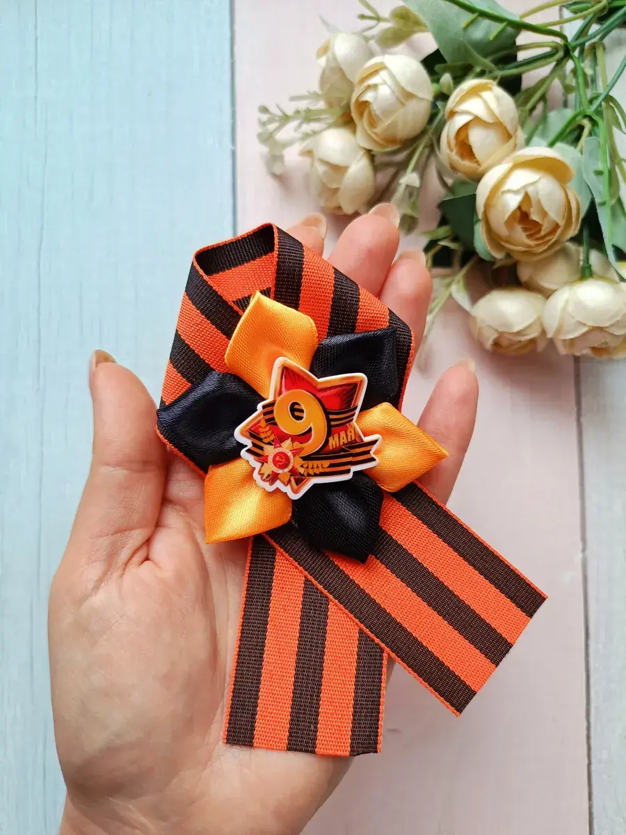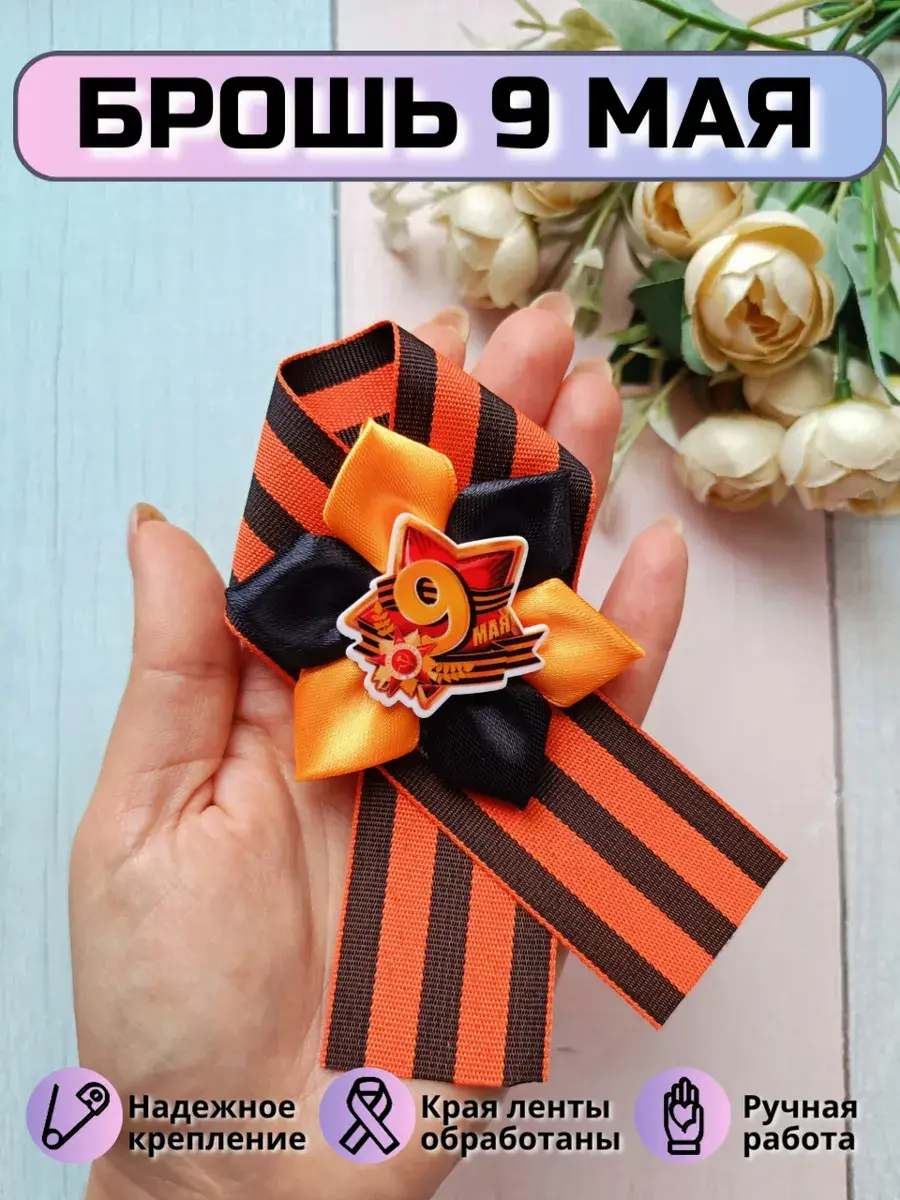 Брошь-значок "9 мая" с Георгиевской лентой от бренда "Липомания" - это стильный и патриотичный аксессуар ко Дню Победы / 9 мая.