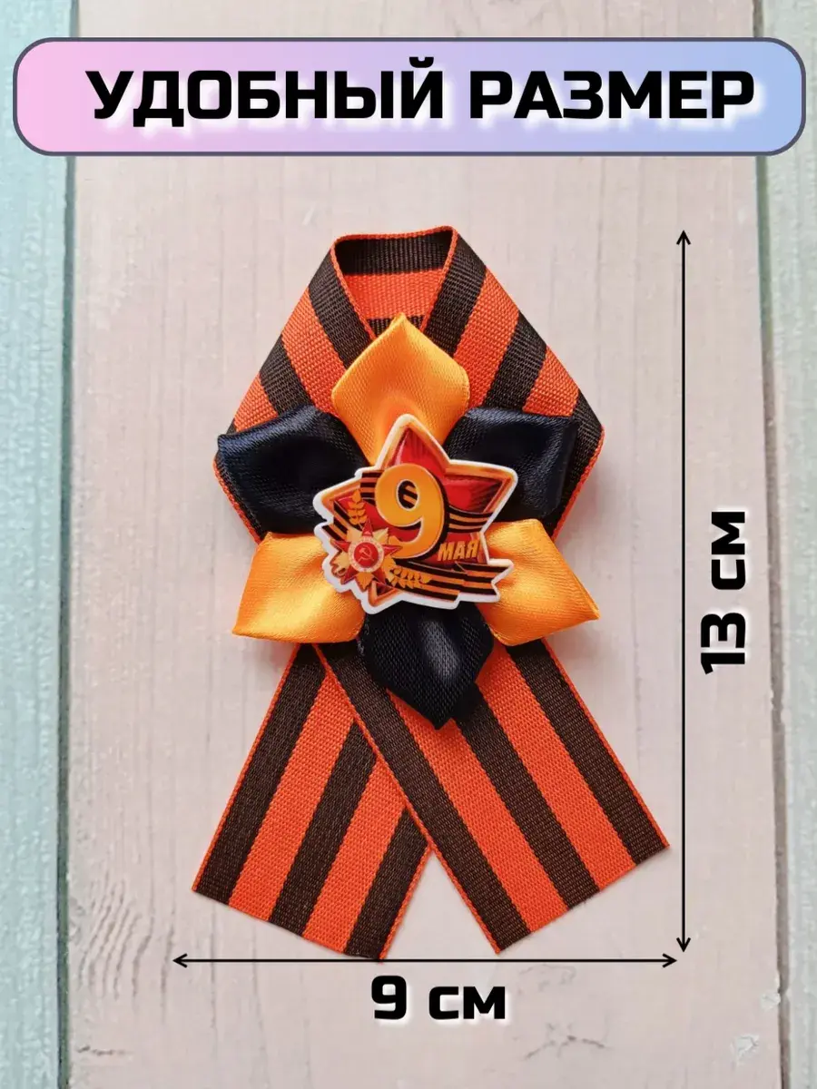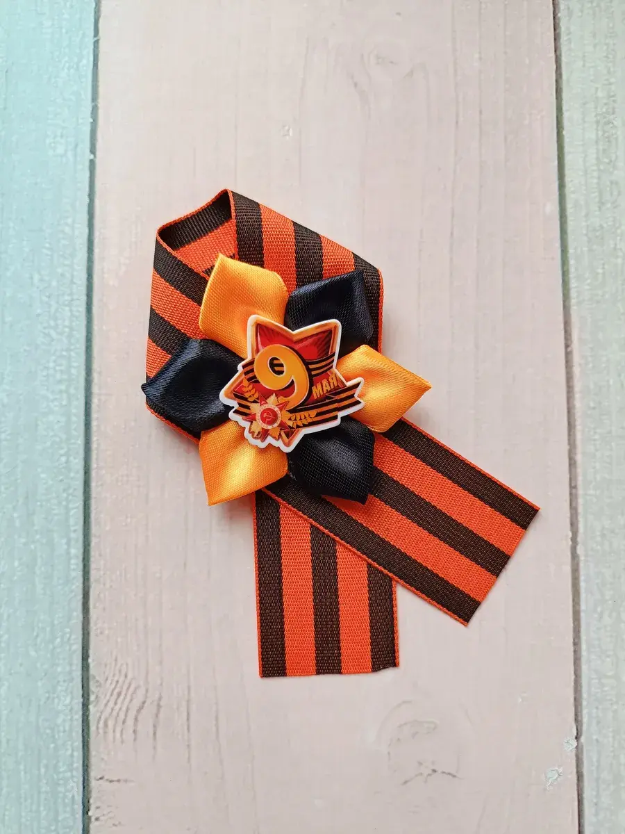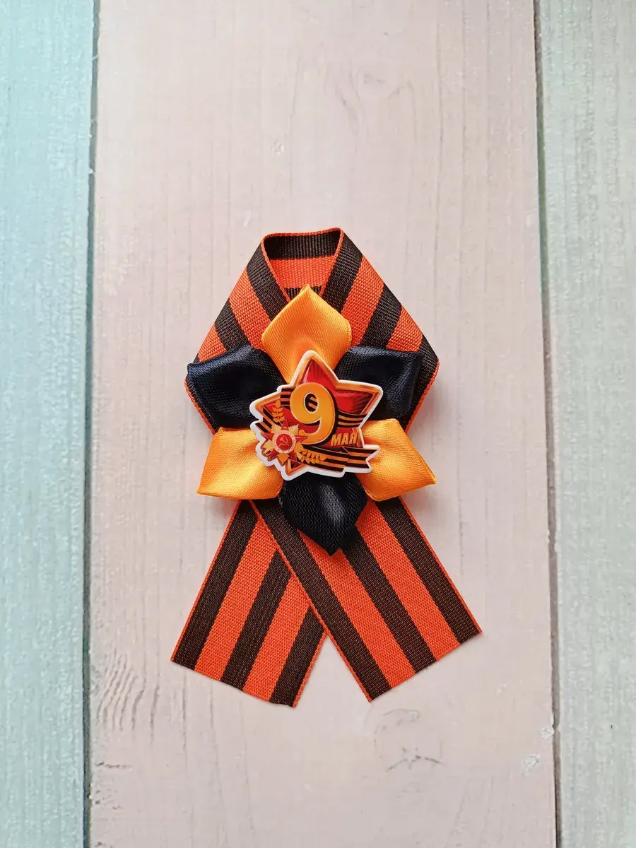 Брошь-значок "9 мая" с Георгиевской лентой от бренда "Липомания" - это стильный и патриотичный аксессуар ко Дню Победы / 9 мая.