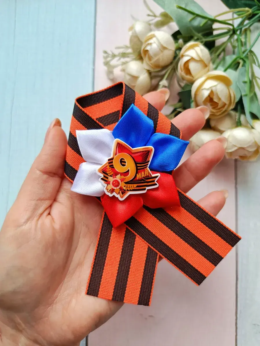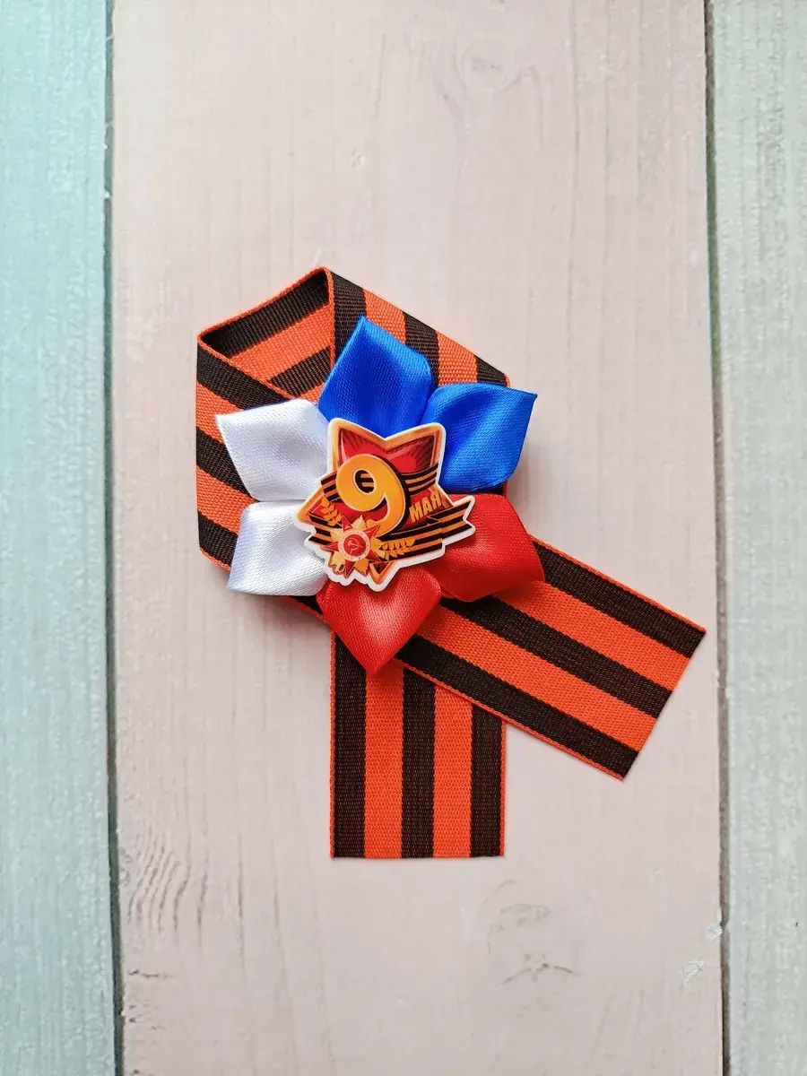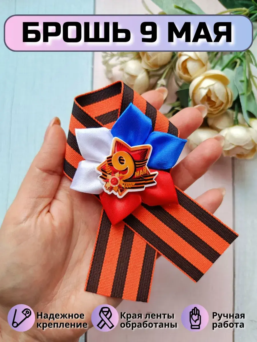 Брошь-значок "9 мая" с Георгиевской лентой от бренда "Липомания" - это стильный и патриотичный аксессуар ко Дню Победы / 9 мая.