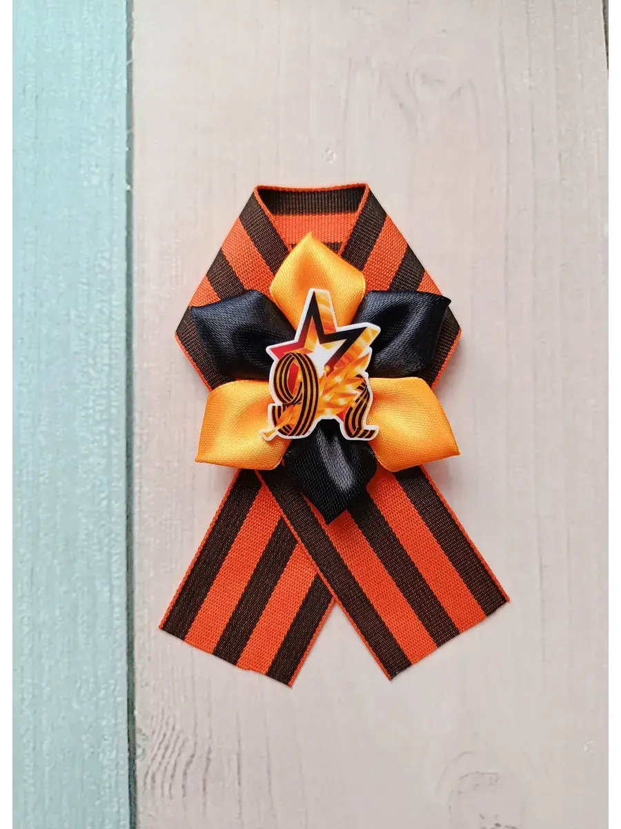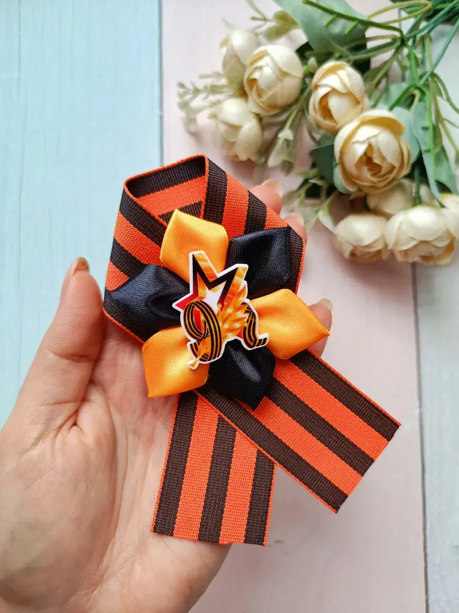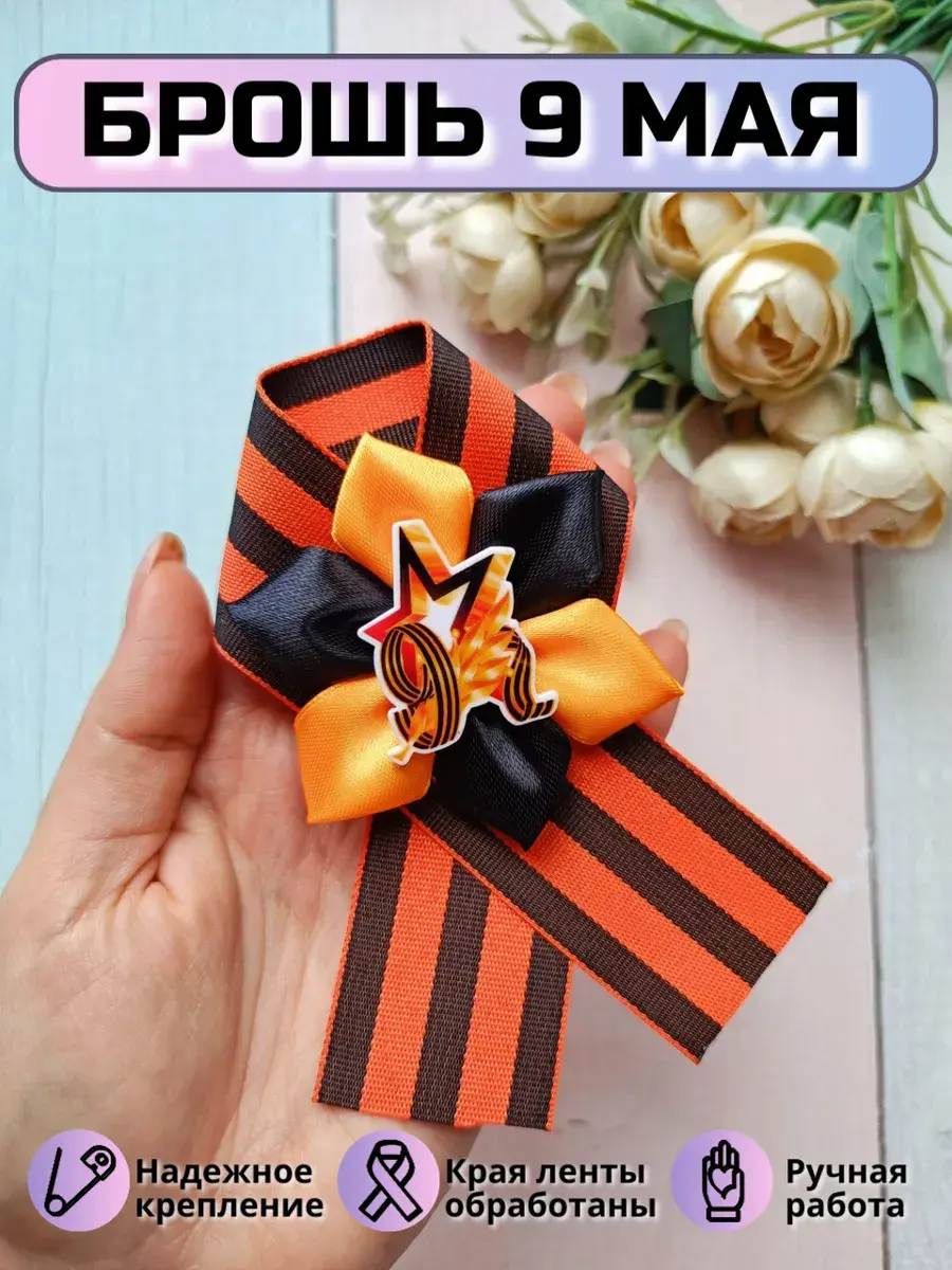 Брошь-значок "9 мая" с Георгиевской лентой от бренда "Липомания" - это стильный и патриотичный аксессуар ко Дню Победы / 9 мая.