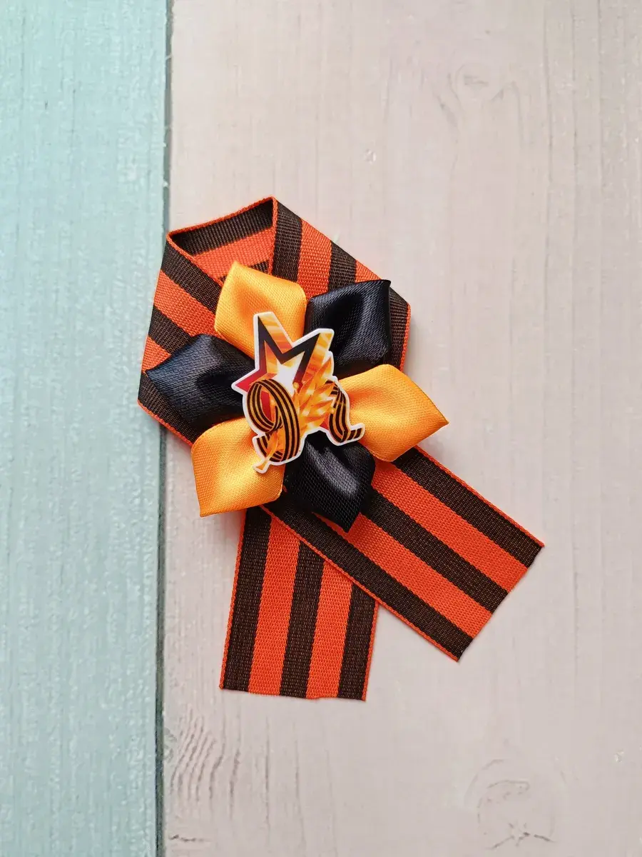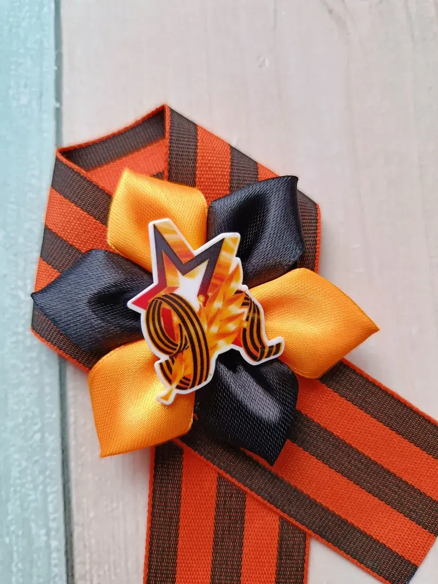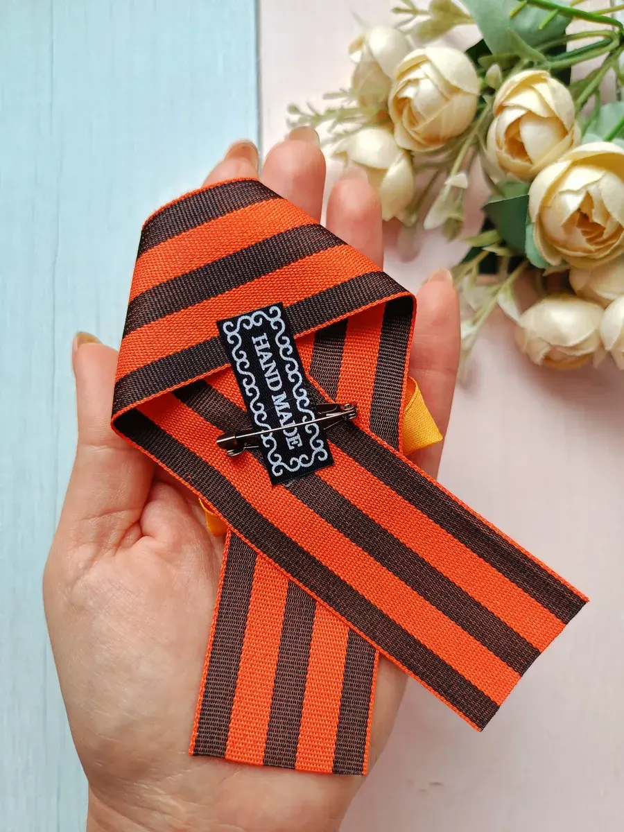 Брошь-значок "9 мая" с Георгиевской лентой от бренда "Липомания" - это стильный и патриотичный аксессуар ко Дню Победы / 9 мая.