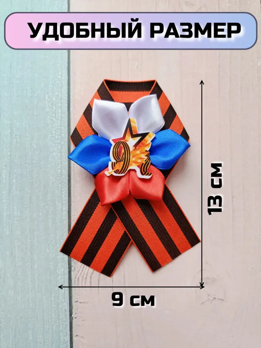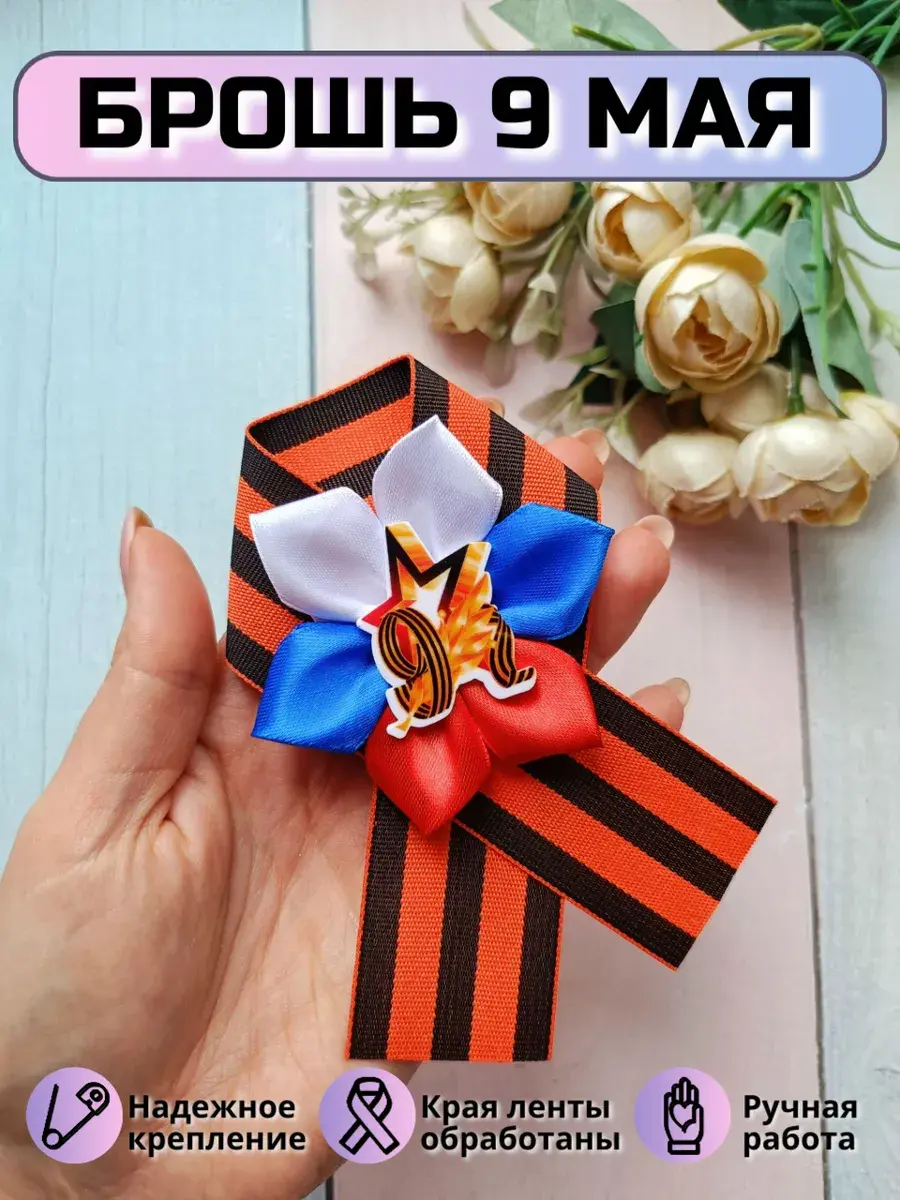 Брошь-значок "9 мая" с Георгиевской лентой от бренда "Липомания" - это стильный и патриотичный аксессуар ко Дню Победы / 9 мая.