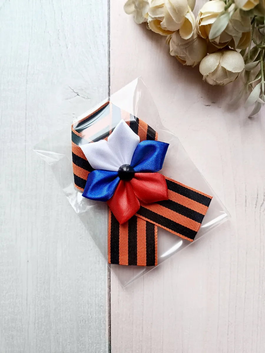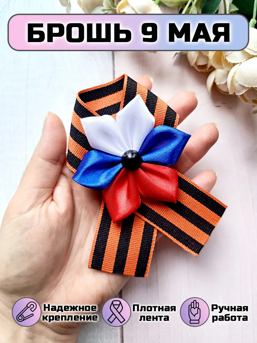 Брошь-значок "9 мая" с Георгиевской лентой от бренда "Липомания" - это стильный и патриотичный аксессуар ко Дню Победы / 9 мая.