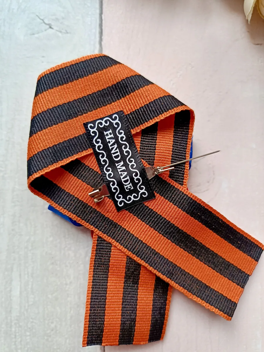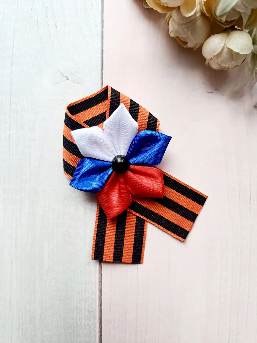 Брошь "Георгиевская ленточка" выполнена из репсовой и атласной лент и пластикового кабошона. Хорошо держит форму и надежно прикреплена к металлической булавке. Ручная работа.