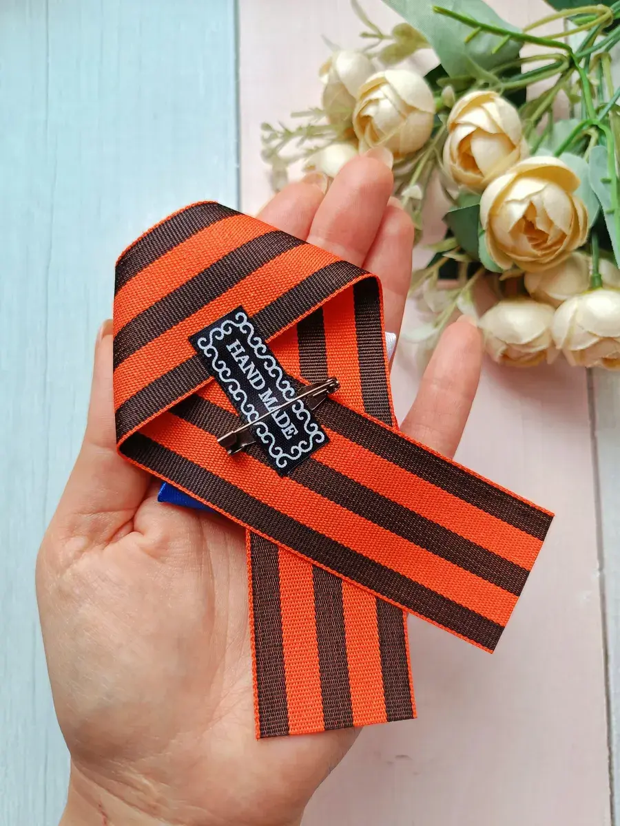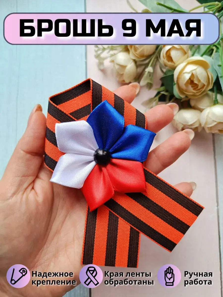 Брошь-значок "9 мая" с Георгиевской лентой от бренда "Липомания" - это стильный и патриотичный аксессуар ко Дню Победы / 9 мая.