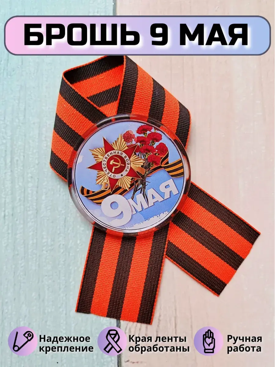 Брошь-значок "9 мая" с Георгиевской лентой от бренда "Липомания" - это стильный и патриотичный аксессуар ко Дню Победы / 9 мая.