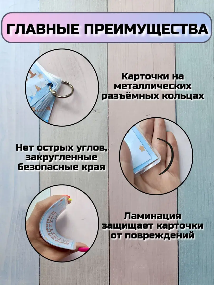 Прочная ламинация защищает карточки, они не порвутся даже при активном использовании.