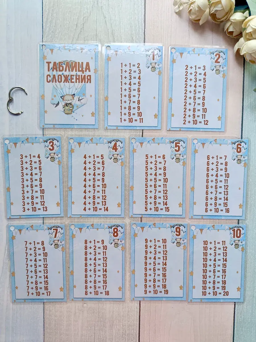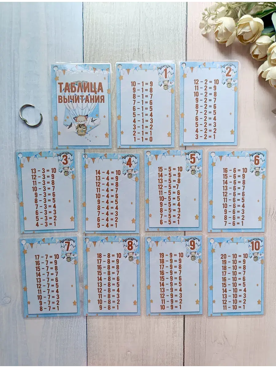 Развивающие пособия в виде карточек хорошо тренируют память. Помогут с запоминанием, изучением и повторением как сложения, так и наоборот, вычитания. Идеально подойдут дошкольникам и школьникам начальных классов.