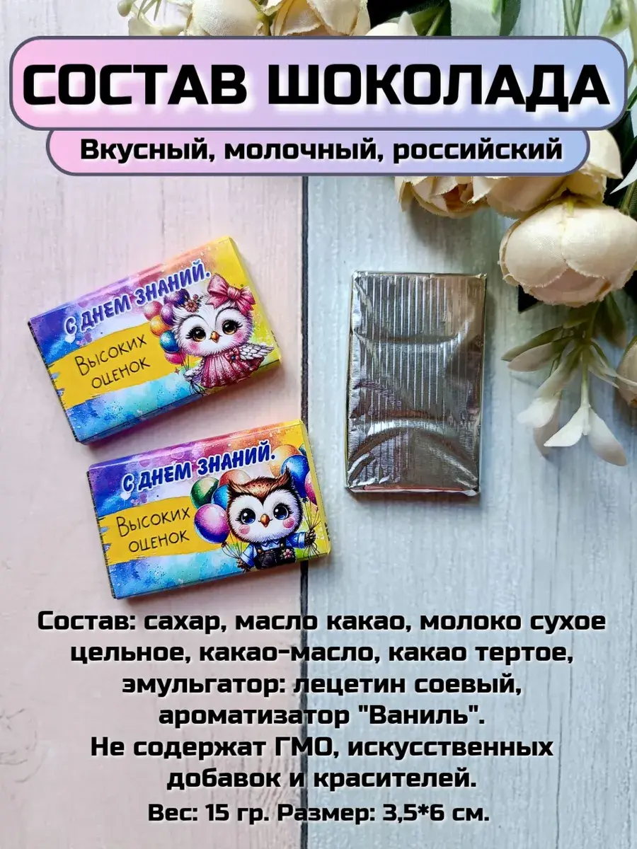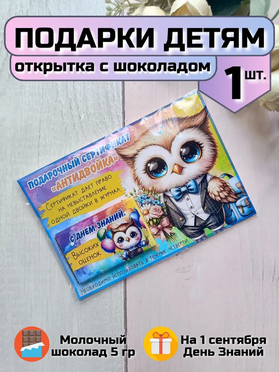 Набор сладких открыток идеально подойдет для всего класса, ведь наборы сложены по 12 шт: 12 шт мальчикам, 12 штук девочкам и 12 штук ассорти (6 мальчикам и 6 девочкам). Если не хватает необходимого количества, всегда можно дозаказать по одной открытке, они также представлены в ассортименте магазина. А если презент останется его можно подарить сыну, дочке, друзьям детей, детям друзьям, внуку или внучке как небольшое поздравление и знак внимания, который послужит отличным угощением к чаю. Яркие открытки с добрыми пожеланиями не оставят никого равнодушным и шоколад добавит вкусную нотку в первый школьный день. Такой подарок станет отличным дополнением к праздничной линейке на День Знаний.