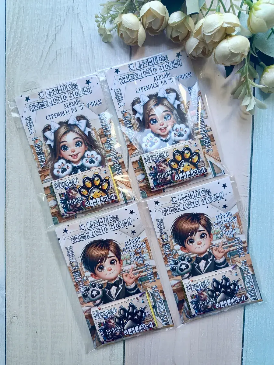 Подарочные открытки на 1 сентября с шоколадом от бренда «Липомания» – это яркий и приятный презент для школьников, который создает праздничное настроение в День Знаний. Такой подарок сочетает в себе теплые пожелания и сладкий сюрприз, что особенно нравится детям. Набор сладких открыток идеально подойдет для всего класса, ведь наборы сложены по 12 шт: 12 шт мальчикам, 12 штук девочкам и 12 штук ассорти (6 мальчикам и 6 девочкам). Если не хватает необходимого количества, всегда можно дозаказать по одной открытке, они также представлены в ассортименте магазина. А если презент останется его можно подарить сыну, дочке, друзьям детей, детям друзьям, внуку или внучке как небольшое поздравление и знак внимания, который послужит отличным угощением к чаю. Яркие открытки с добрыми пожеланиями не оставят никого равнодушным и шоколад добавит вкусную нотку в первый школьный день. Такой подарок станет отличным дополнением к праздничной линейке на День Знаний. Размер открытки 9 см х 14 см, внутри плитка классического молочного шоколада 15 гр. Состав шоколада: сахар, молоко сухое цельное, масло какао, какао тертое, эмульгаторы: лецитин соевый, Е476; ароматизаторы. Без ГМО, без консервантов. 25% какао. Каждый презент в индивидуальной упаковке. Заказ 12-и штук отправляется в коробке. Заказ одной открытки – в курьер-пакете.