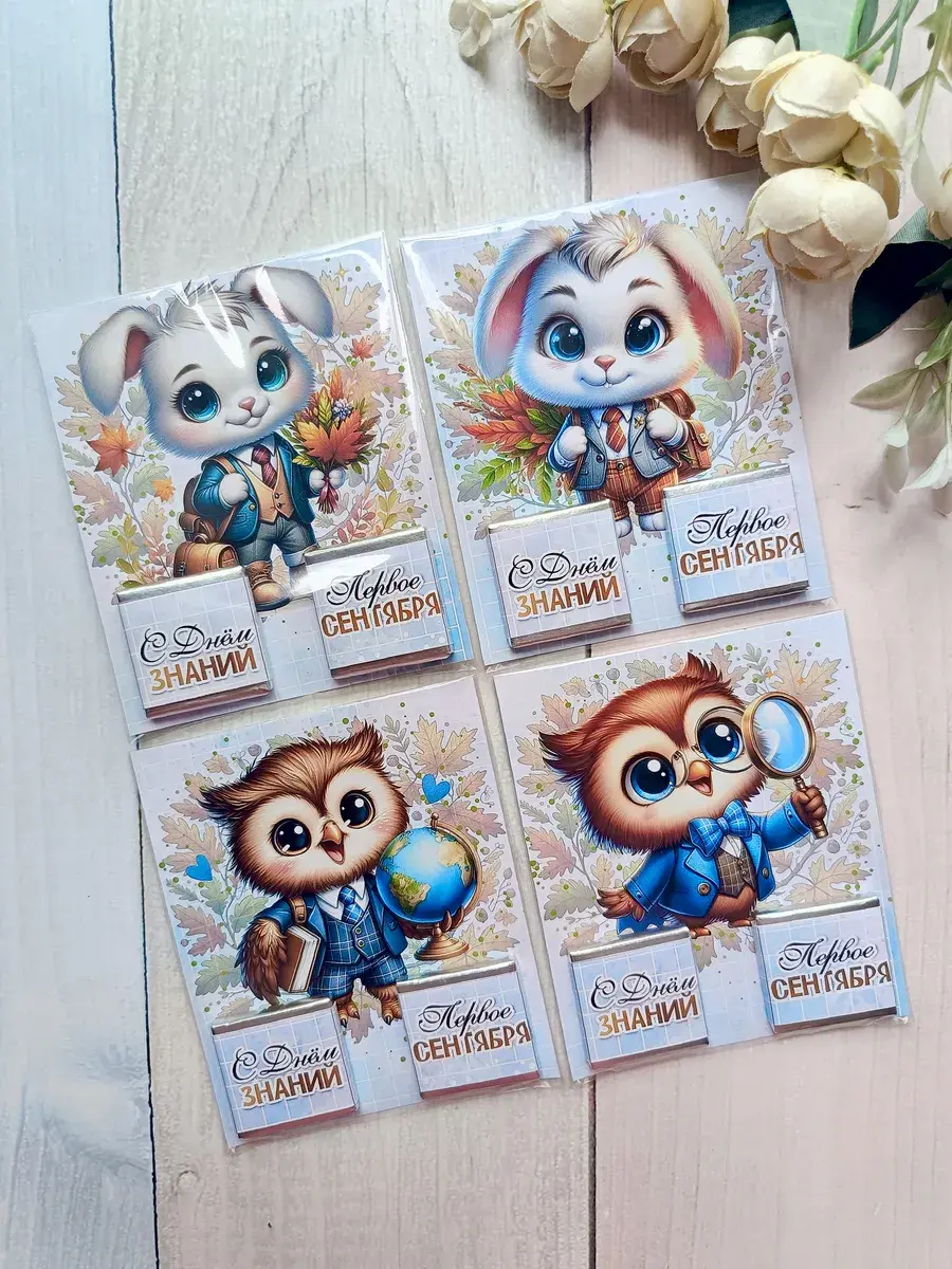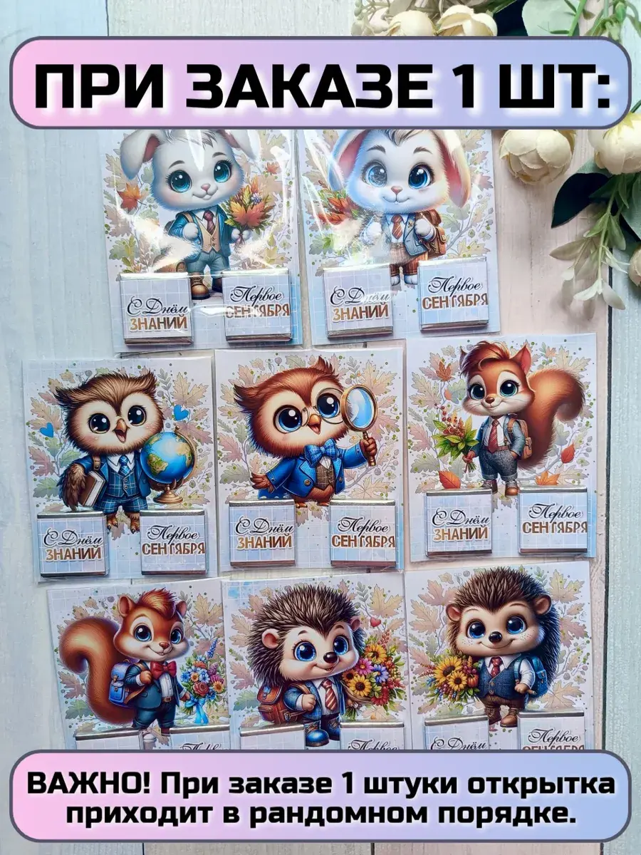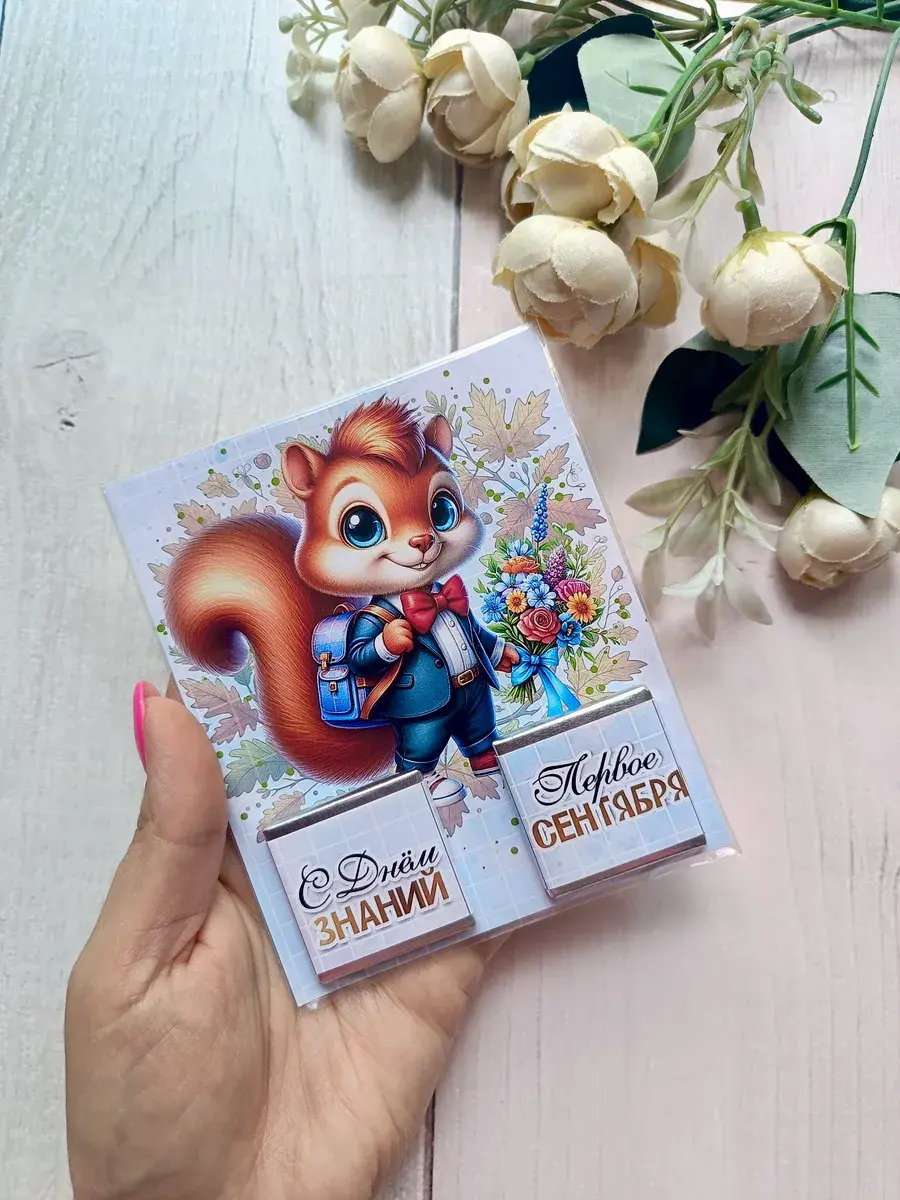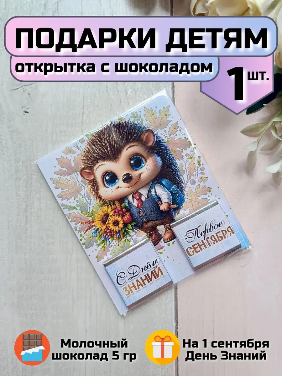 Открытка детям на 1 сентября с шоколадом