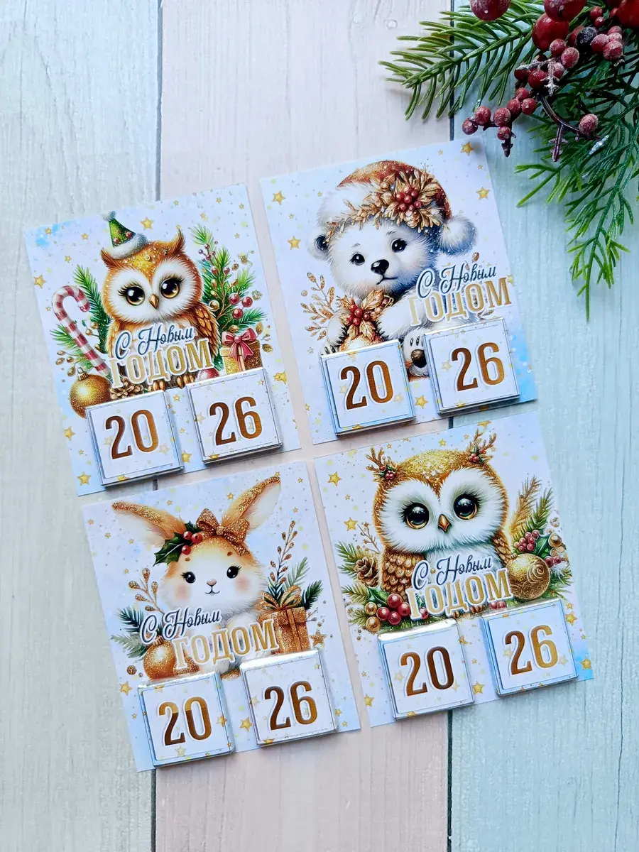 Подарочные открытки на Новый год с двумя плитками молочного шоколада от бренда «Липомания» – это яркий и приятный презент для школьников и дошкольников, который создаст праздничное новогоднее настроение. Такой подарок сочетает в себе теплые пожелания и сладкий сюрприз, что особенно нравится детям.