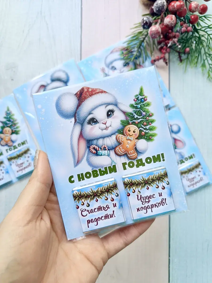 Подарочные открытки на Новый год с двумя плитками молочного шоколада от бренда «Липомания» – это яркий и приятный презент для школьников и дошкольников, который создаст праздничное новогоднее настроение. Такой подарок сочетает в себе теплые пожелания и сладкий сюрприз, что особенно нравится детям.