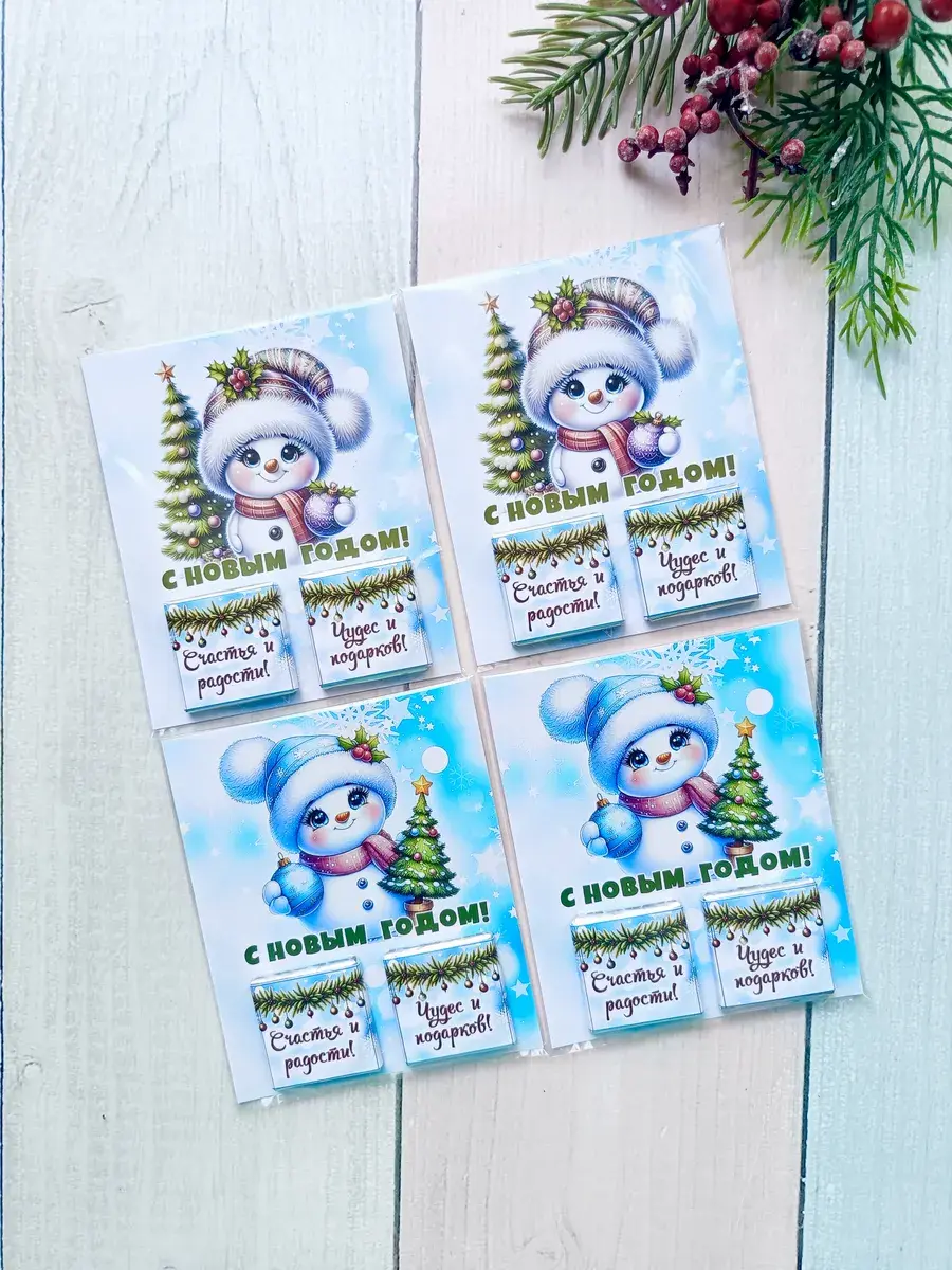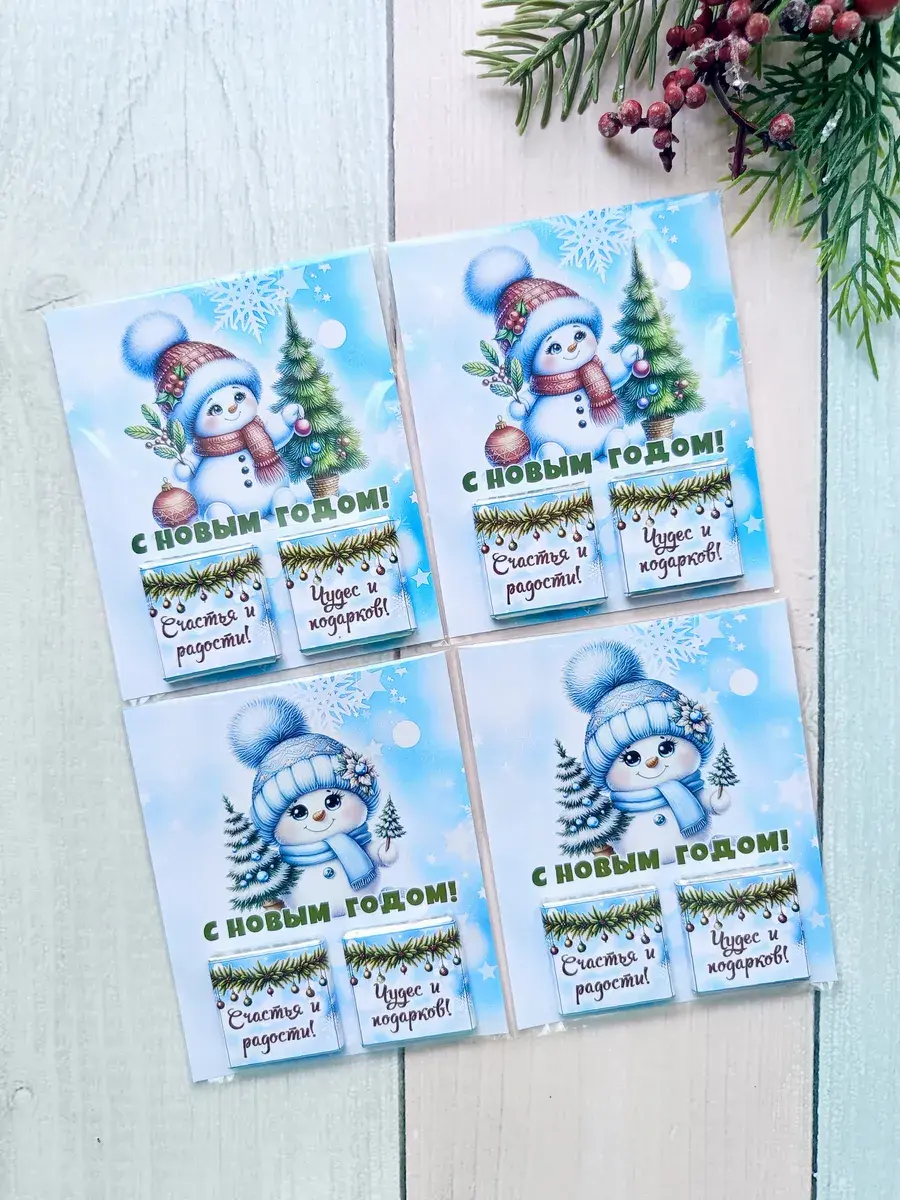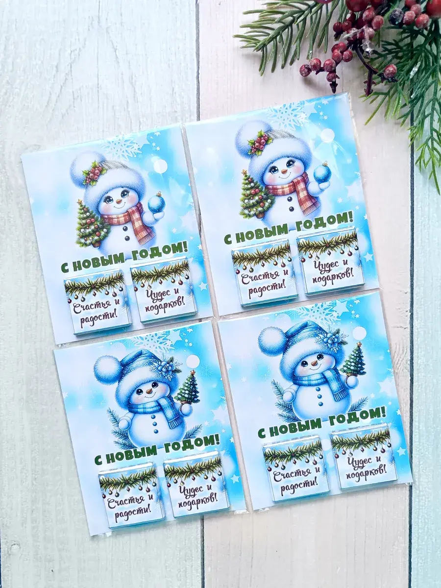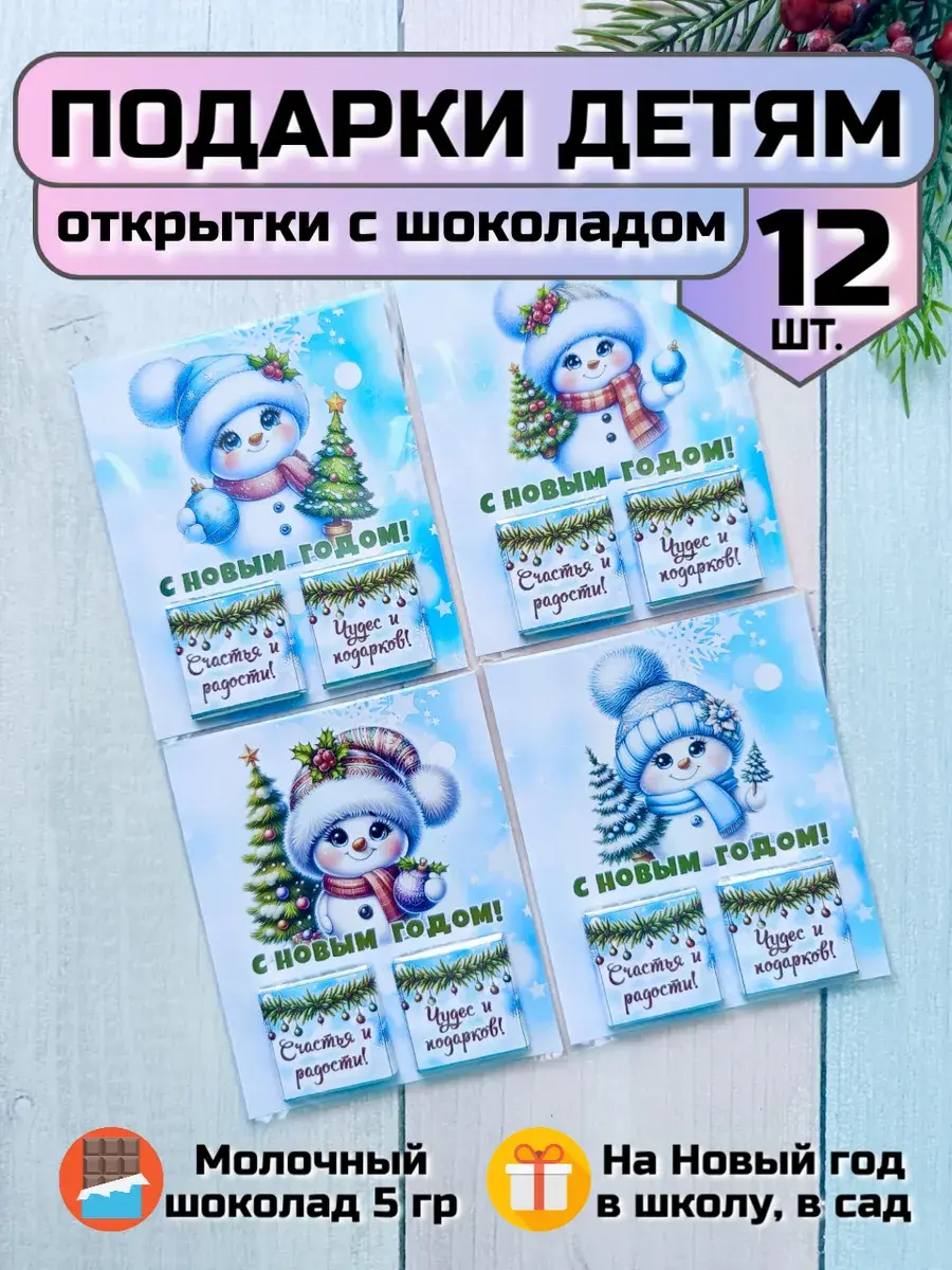 Набор сладких открыток идеально подойдет для всего класса или группы детского сада, ведь открытки сложены по 12 штук в упаковке ( 6 видов разных снеговичков). А если презент останется его можно подарить сыну, дочке, друзьям детей, детям друзьям, внуку или внучке как небольшое поздравление и знак внимания, который послужит отличным угощением к чаю. Яркие открытки с добрыми пожеланиями не оставят никого равнодушным и шоколад добавит вкусную нотку в предвкушении новогоднего волшебства и зимних каникул.