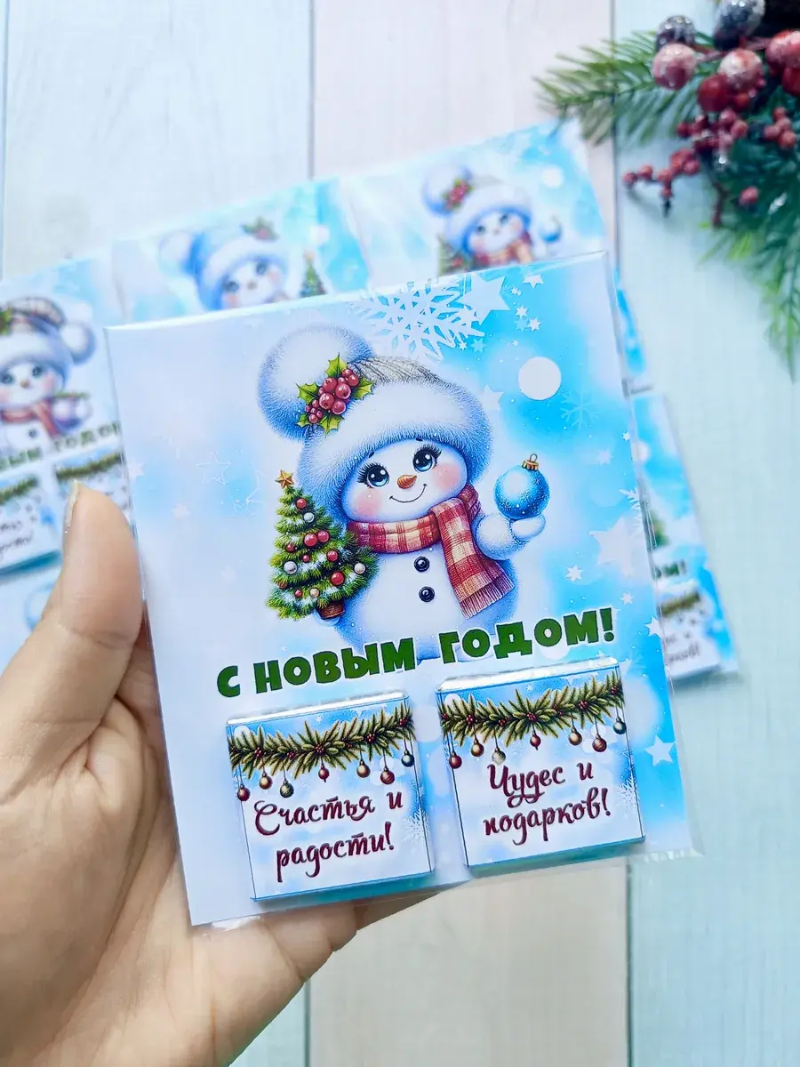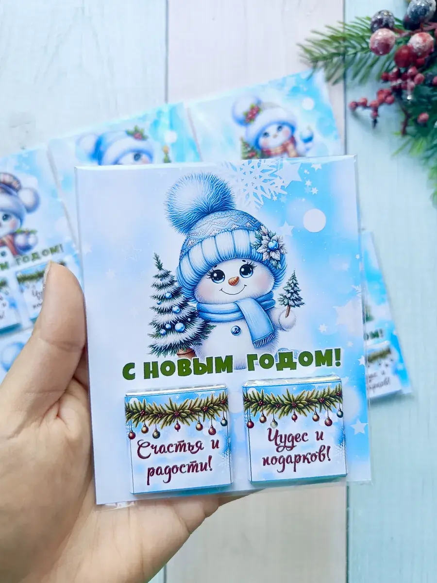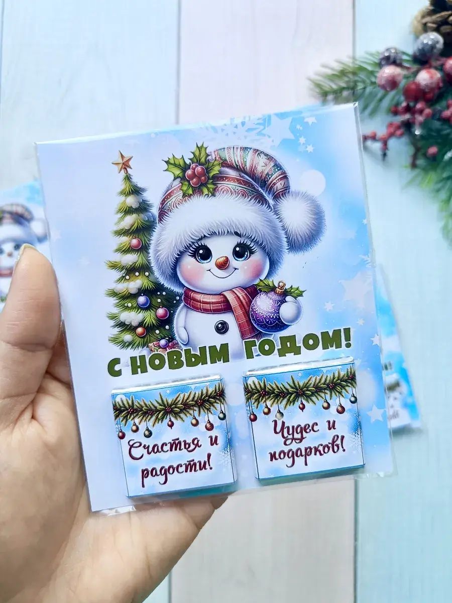 Подарочные открытки на Новый год с двумя плитками молочного шоколада от бренда «Липомания» – это яркий и приятный презент для школьников и дошкольников, который создаст праздничное новогоднее настроение. Такой подарок сочетает в себе теплые пожелания и сладкий сюрприз, что особенно нравится детям.