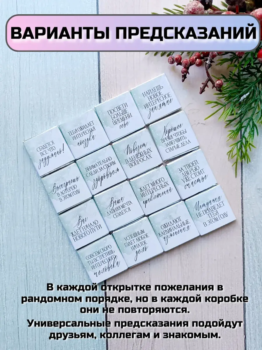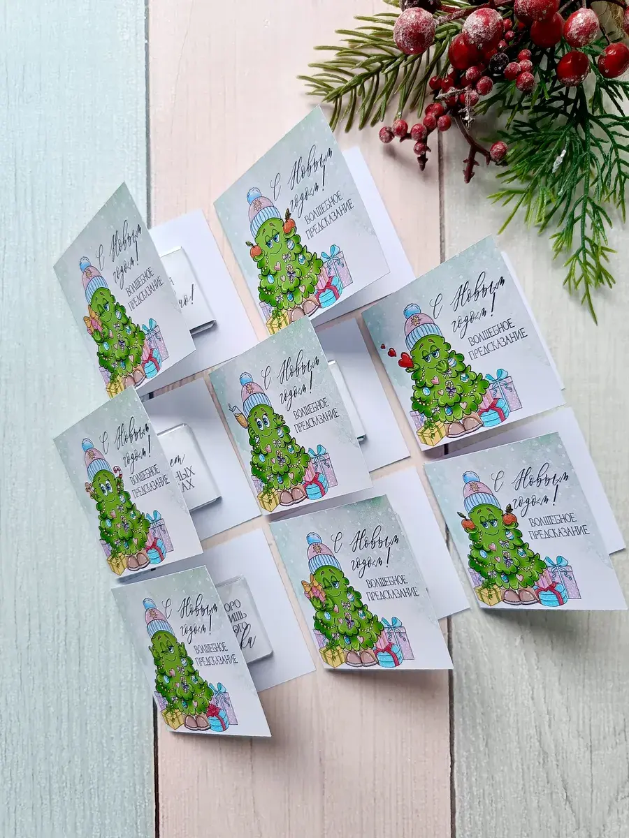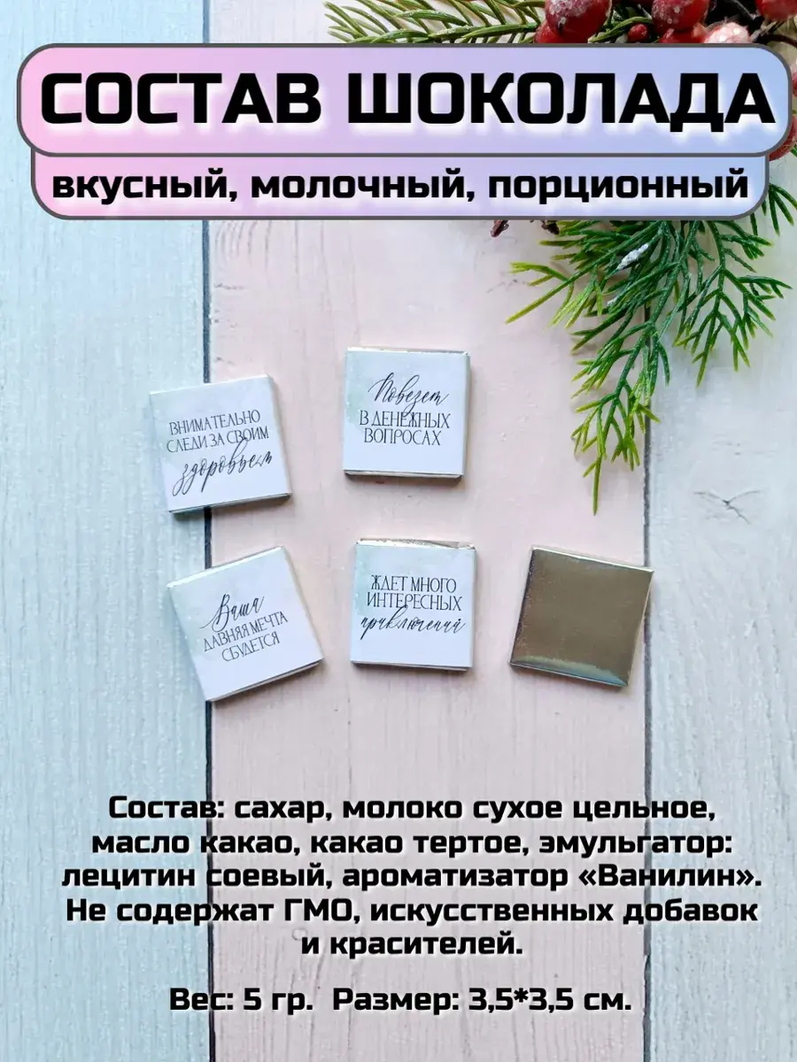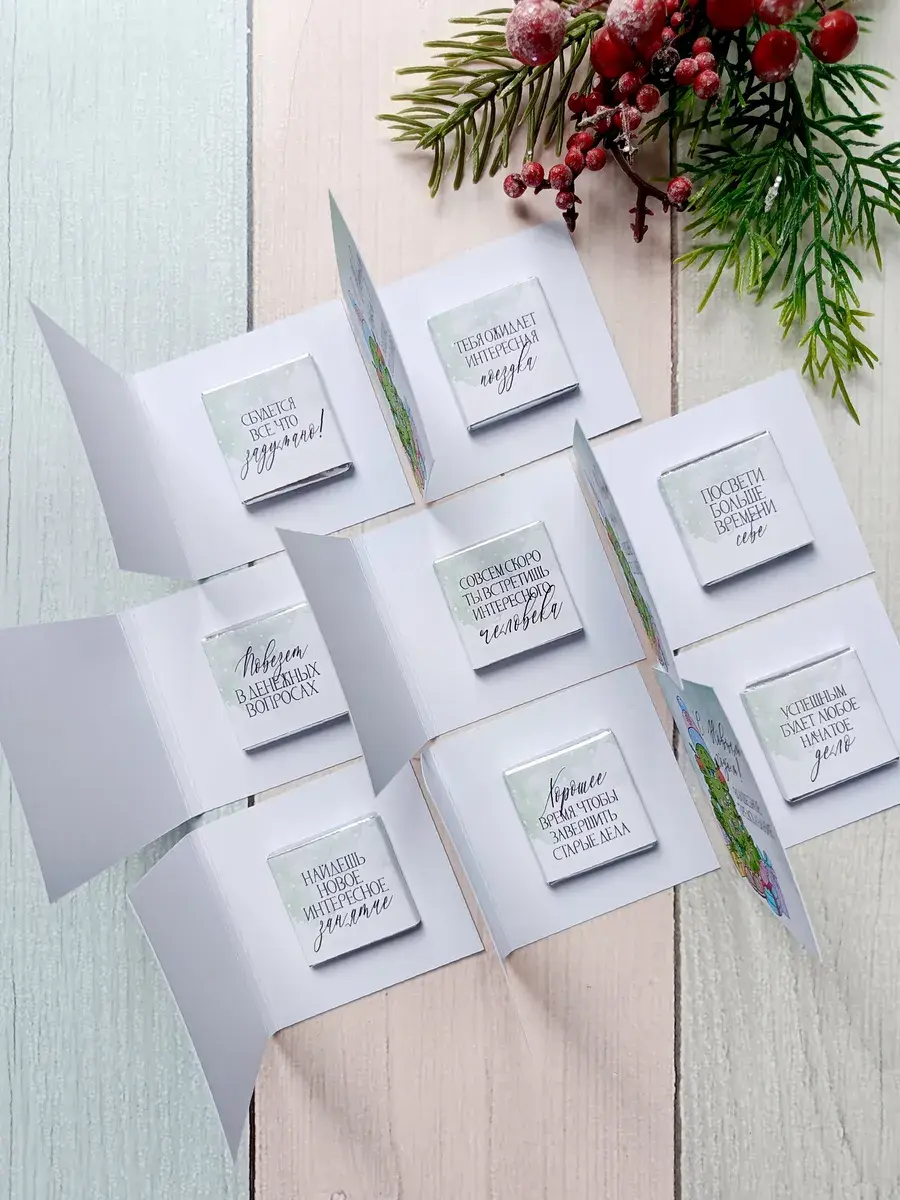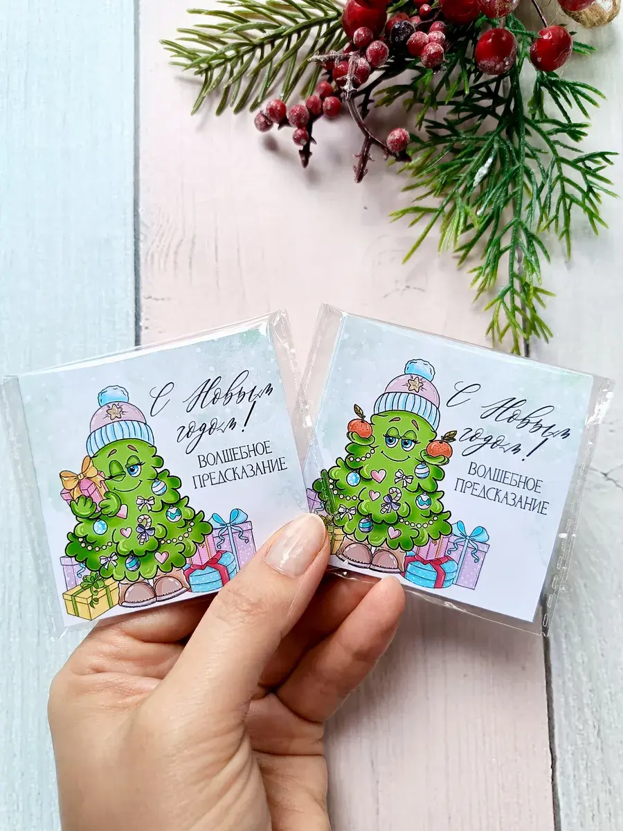 Подарочные открытки с предсказанием на Новый год с шоколадной плиткой внутри от бренда «Липомания» – это яркий и приятный презент, который создает праздничное настроение к Новому году. Такой подарок сочетает в себе интересное рандомное предсказание и сладкий сюрприз, что особенно нравится и детям, и взрослым.