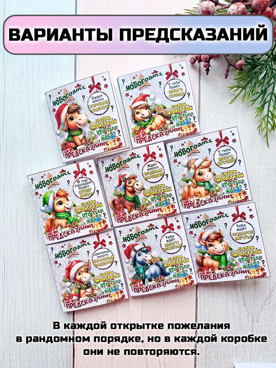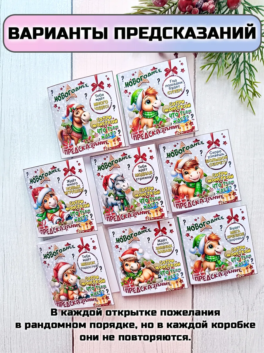 Подарочные открытки с предсказанием на Новый год с шоколадной плиткой внутри от бренда «Липомания» – это яркий и приятный презент, который создает праздничное настроение к Новому году. Такой подарок сочетает в себе интересное рандомное предсказание, которое можно прочитать сотря монеткой защитный слой, и сладкий сюрприз, что особенно нравится и детям.