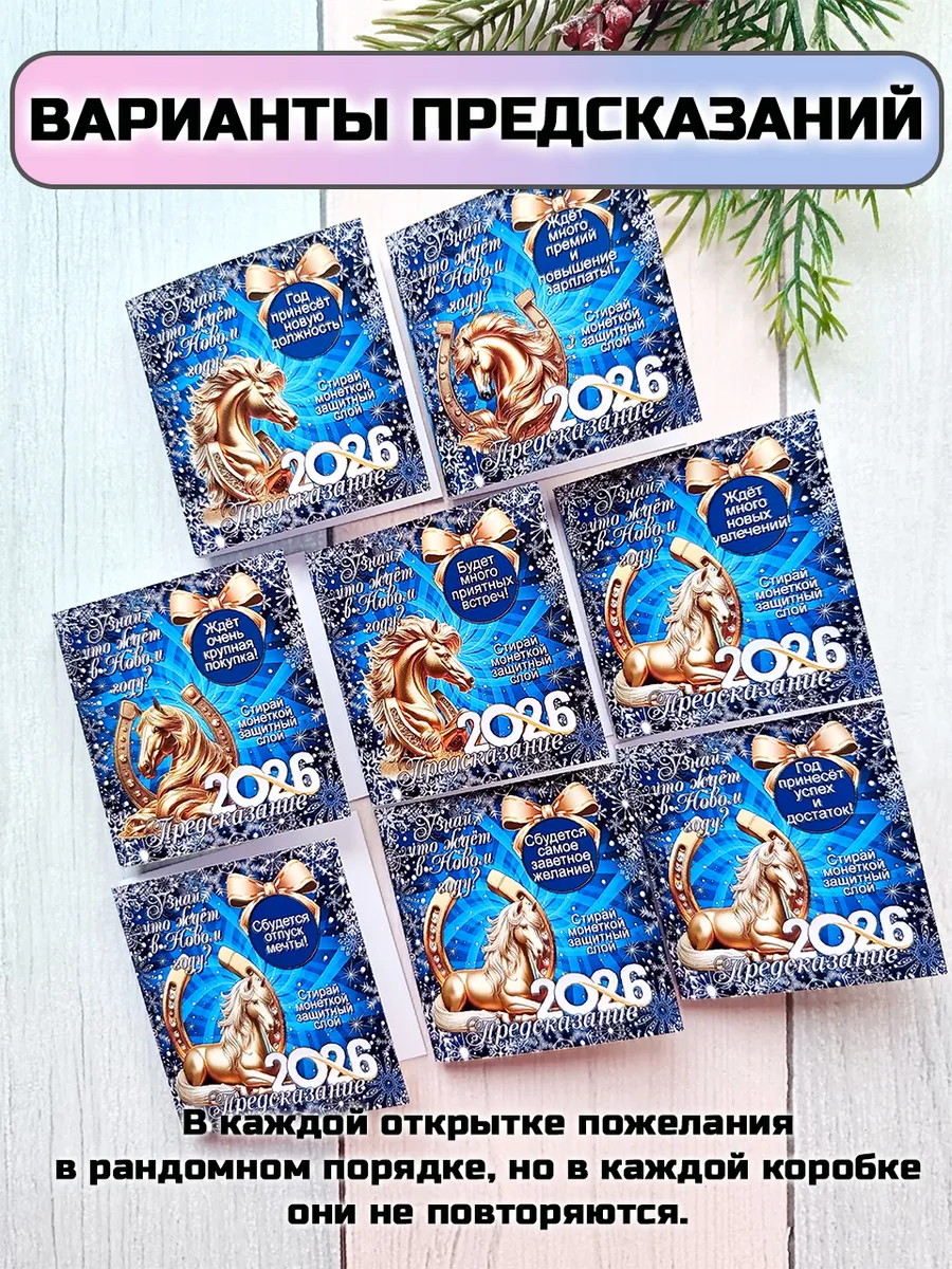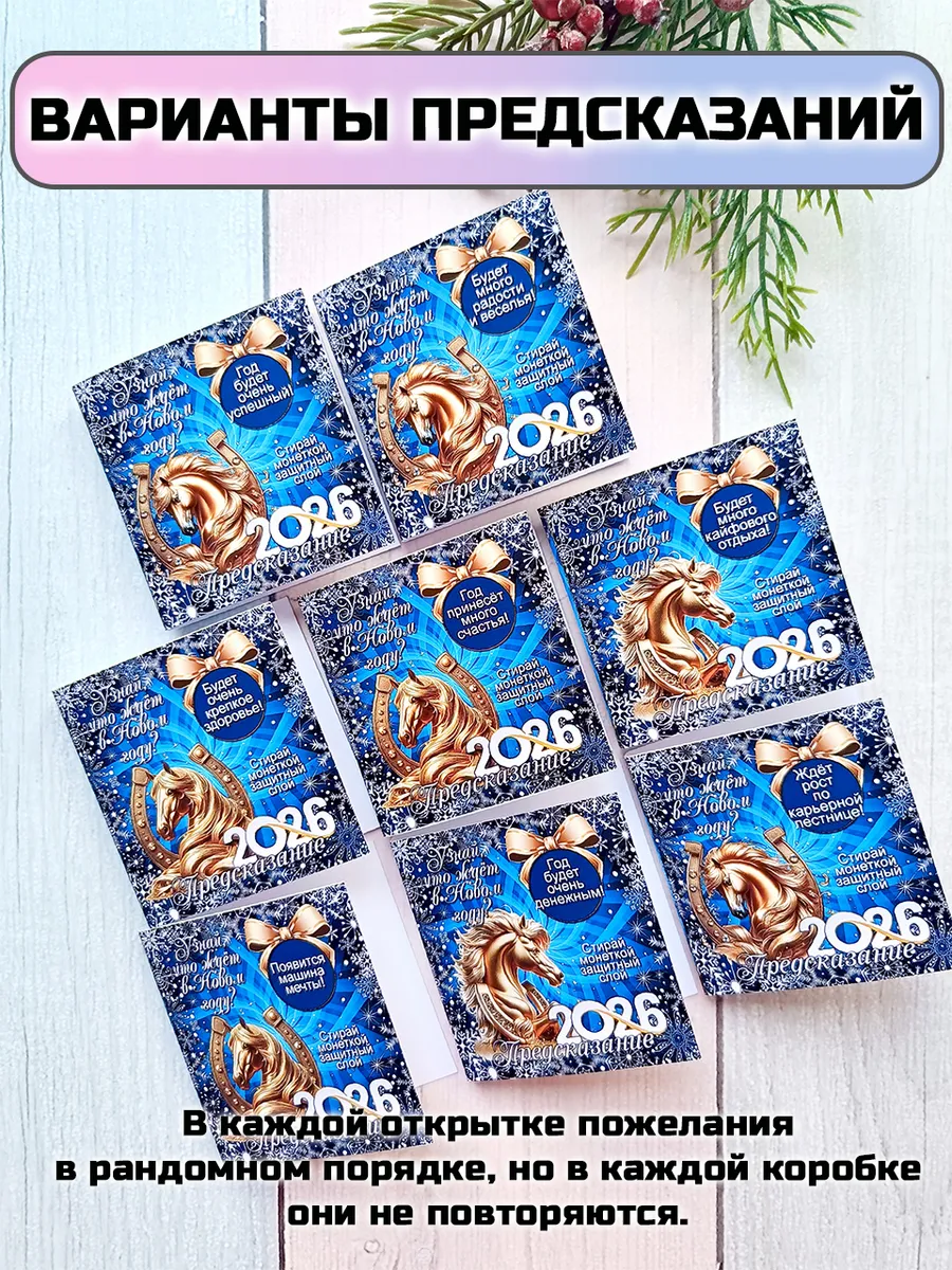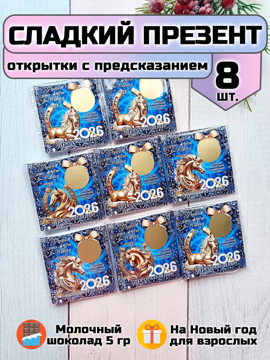 Подарочные открытки с предсказанием на Новый год с шоколадной плиткой внутри от бренда «Липомания» – это яркий и приятный презент, который создает праздничное настроение к Новому году. Такой подарок сочетает в себе интересное рандомное предсказание, которое можно прочитать сотря монеткой защитный слой, и сладкий сюрприз.
