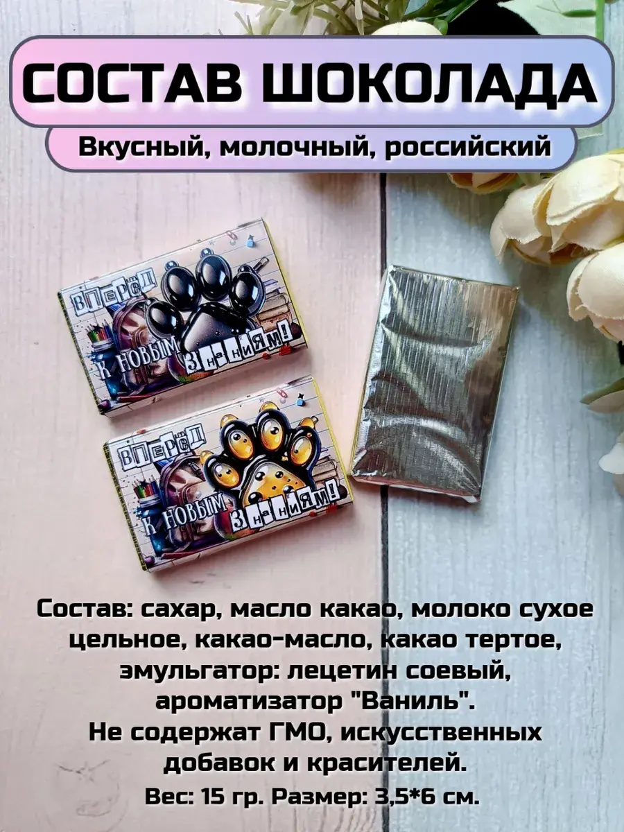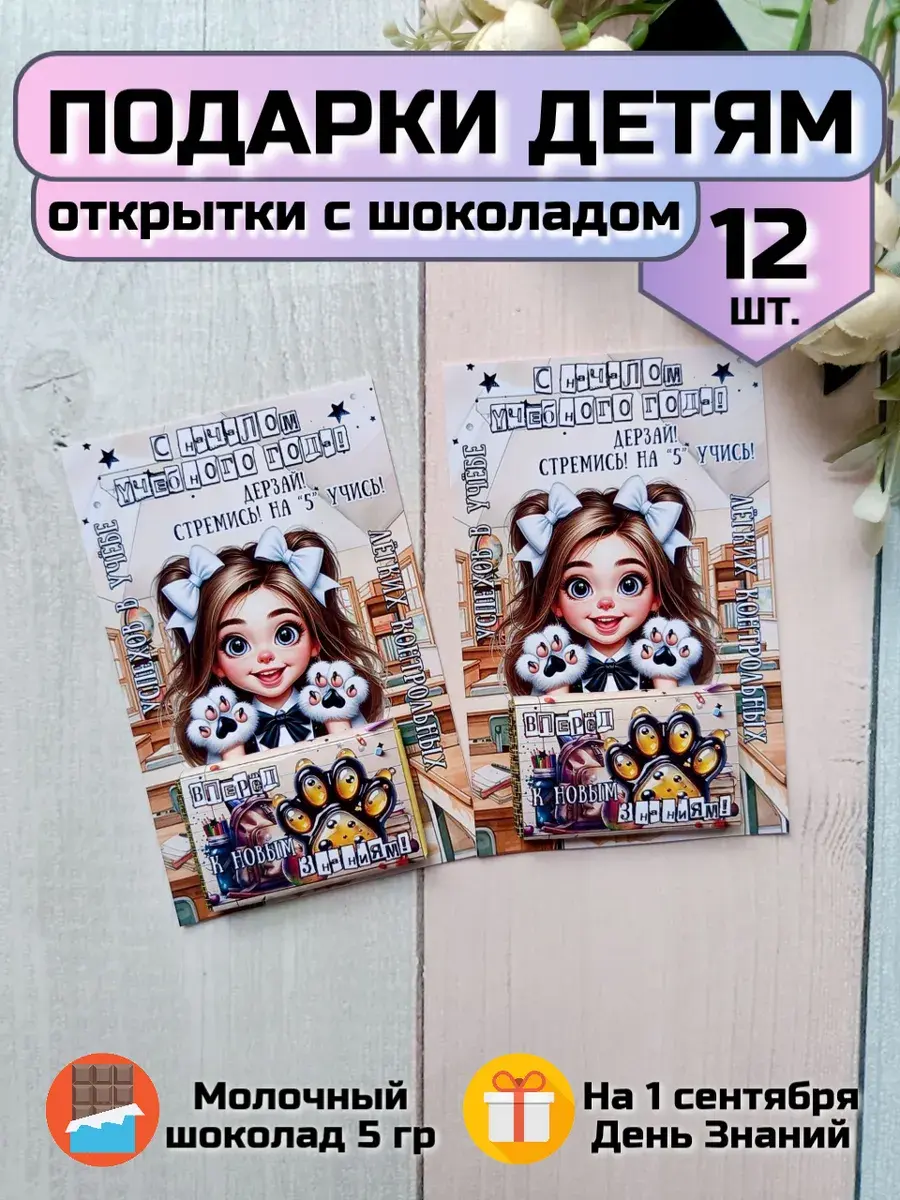 Набор сладких открыток идеально подойдет для всего класса, ведь наборы сложены по 12 шт: 12 шт мальчикам, 12 штук девочкам и 12 штук ассорти (6 мальчикам и 6 девочкам). Если не хватает необходимого количества, всегда можно дозаказать по одной открытке, они также представлены в ассортименте магазина. А если презент останется его можно подарить сыну, дочке, друзьям детей, детям друзьям, внуку или внучке как небольшое поздравление и знак внимания, который послужит отличным угощением к чаю. Яркие открытки с добрыми пожеланиями не оставят никого равнодушным и шоколад добавит вкусную нотку в первый школьный день. Такой подарок станет отличным дополнением к праздничной линейке на День Знаний.