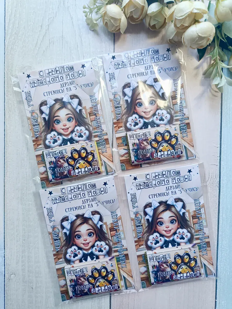 Подарочные открытки на 1 сентября с шоколадом от бренда «Липомания» – это яркий и приятный презент для школьников, который создает праздничное настроение в День Знаний. Такой подарок сочетает в себе теплые пожелания и сладкий сюрприз, что особенно нравится детям.
