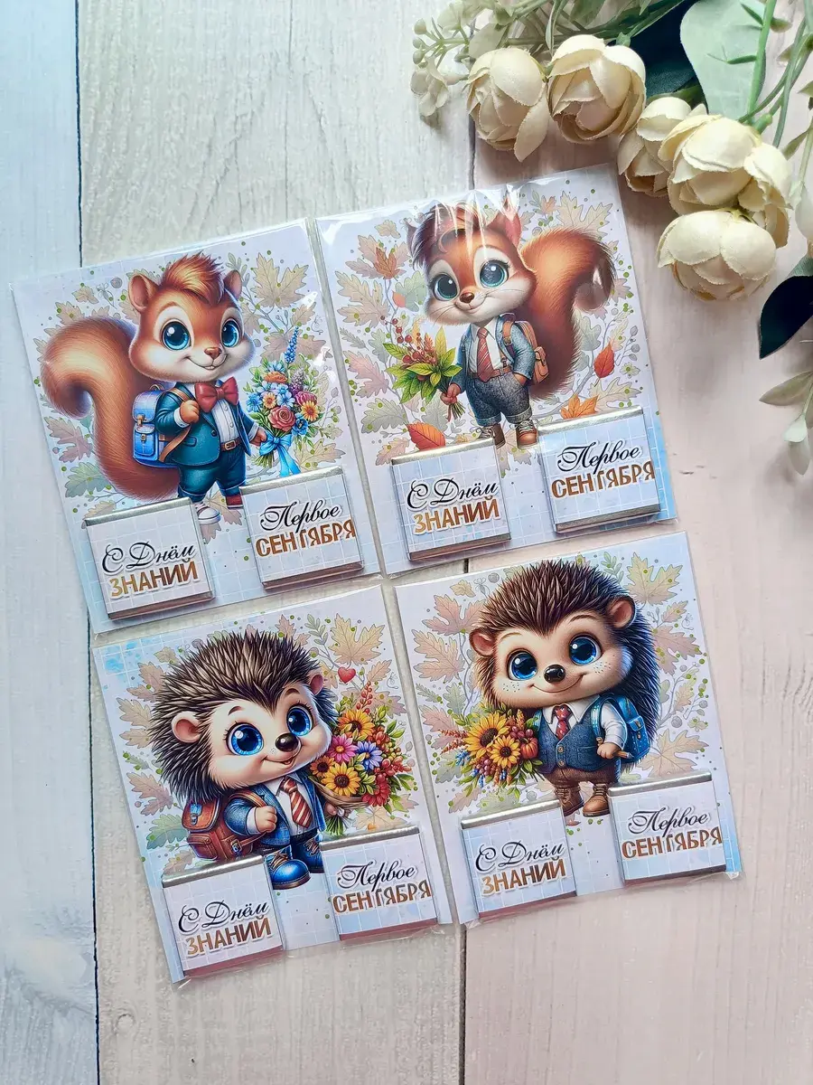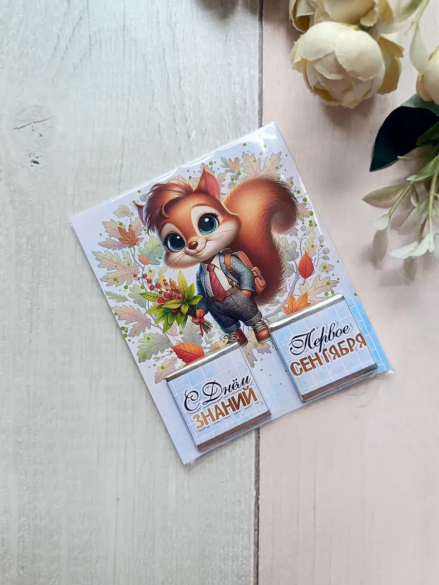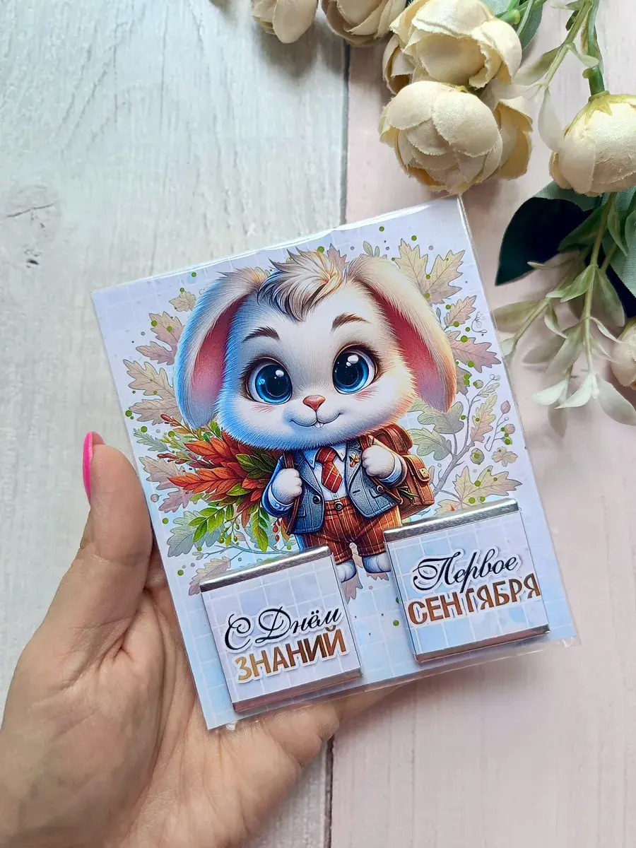 Подарочные открытки на 1 сентября с двумя плитками молочного шоколада от бренда «Липомания» – это яркий и приятный презент для школьников, который создает праздничное настроение в День Знаний. Такой подарок сочетает в себе теплые пожелания и сладкий сюрприз, что особенно нравится детям.