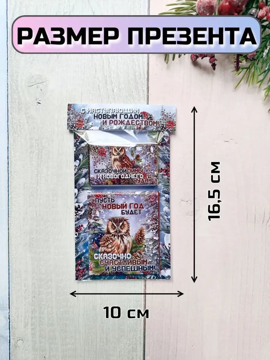 Набор сладких открыток идеально подойдет для друзей, коллег, родных и знакомых, как небольшое поздравление и знак внимания, который послужит отличным угощением к чаю. Яркие открытки с добрыми пожеланиями не оставят никого равнодушным и шоколад добавит вкусную нотку в предвкушении новогоднего волшебства и зимних каникул.
