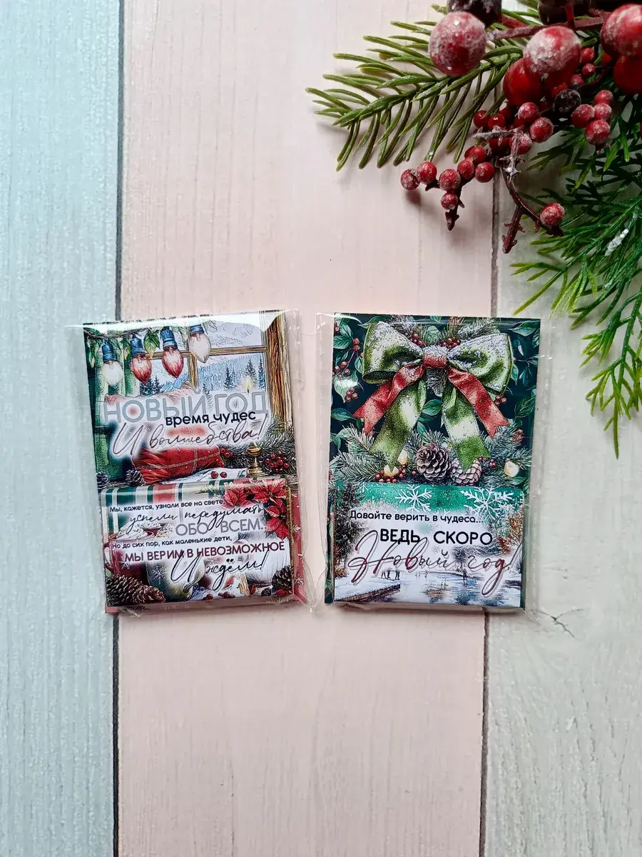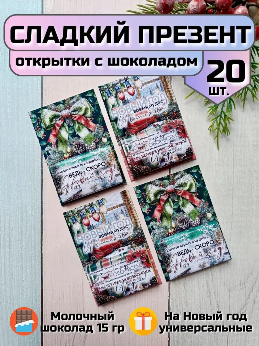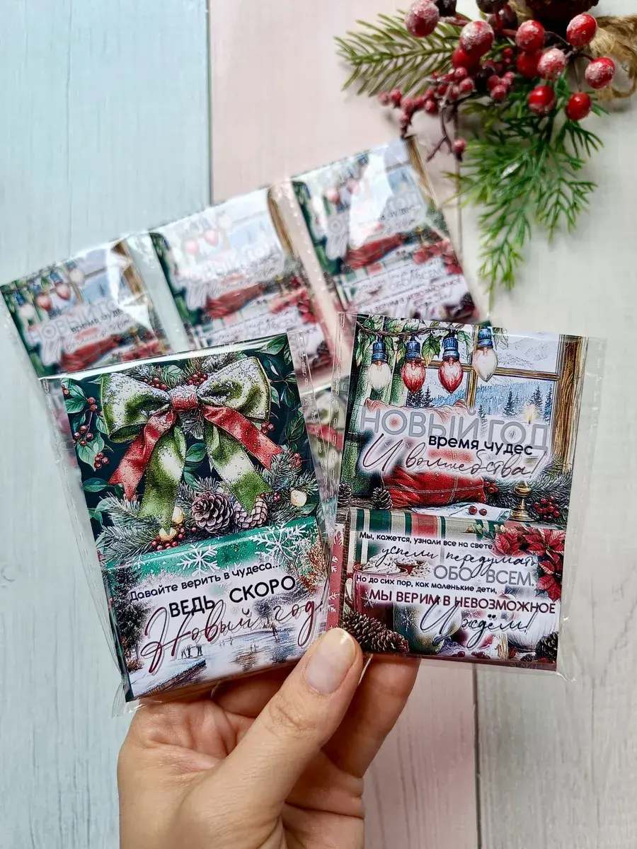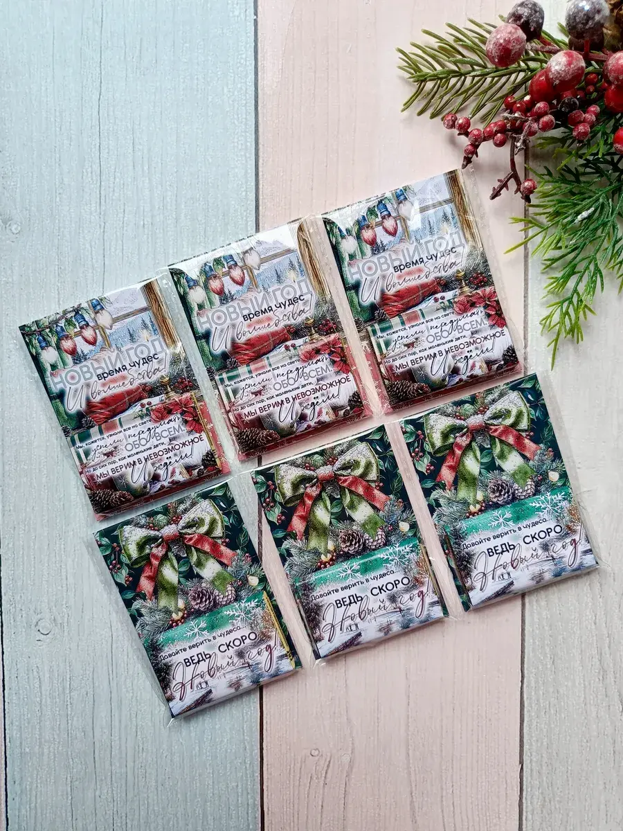 Набор сладких открыток идеально подойдет для друзей, коллег, родных и знакомых, как небольшое поздравление и знак внимания, который послужит отличным угощением к чаю. Яркие открытки с добрыми пожеланиями не оставят никого равнодушным и шоколад добавит вкусную нотку в предвкушении новогоднего волшебства и зимних каникул.