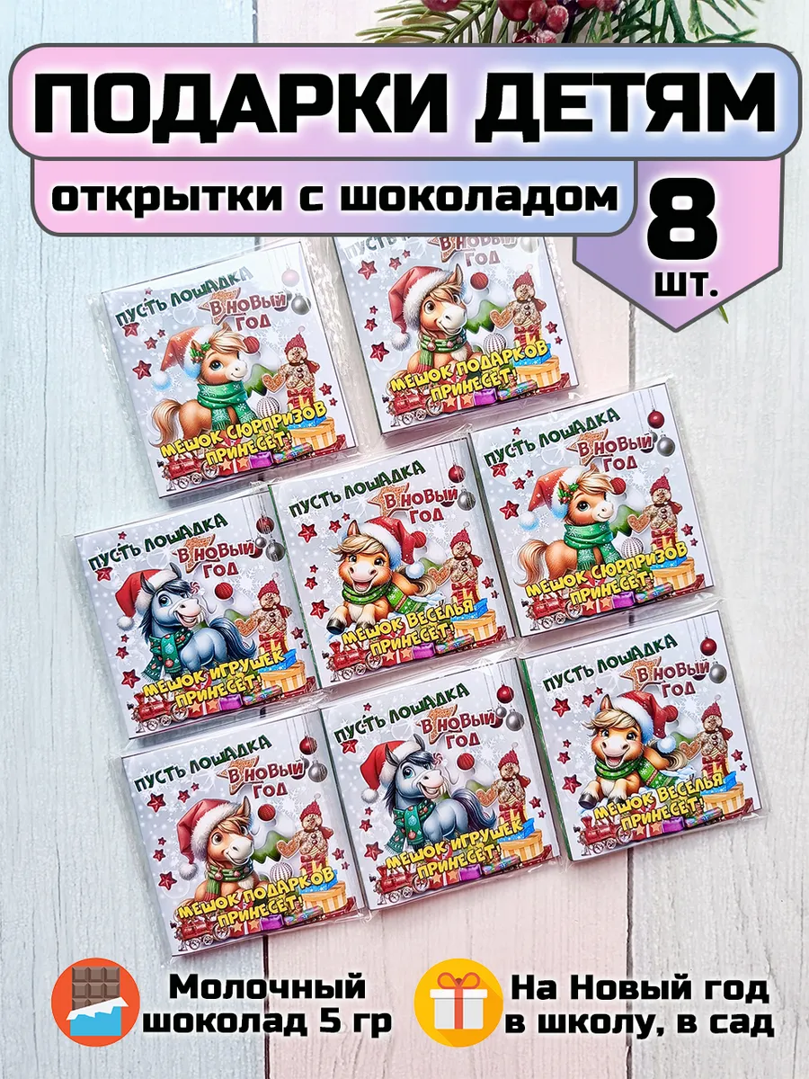 Набор сладких открыток идеально подойдет для садиков и школ. В коробке по 8 сладких открыток, поэтому легко заказать необходимое количество. А если презент останется его можно подарить сыну, дочке, друзьям детей, детям друзьям, внуку или внучке как небольшое поздравление и знак внимания, который послужит отличным угощением к чаю. Яркие открытки с добрыми пожеланиями не оставят никого равнодушным и шоколад добавит вкусную нотку в предвкушении новогоднего волшебства и зимних каникул.