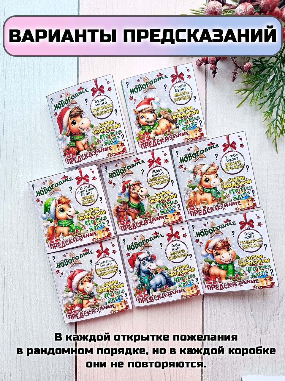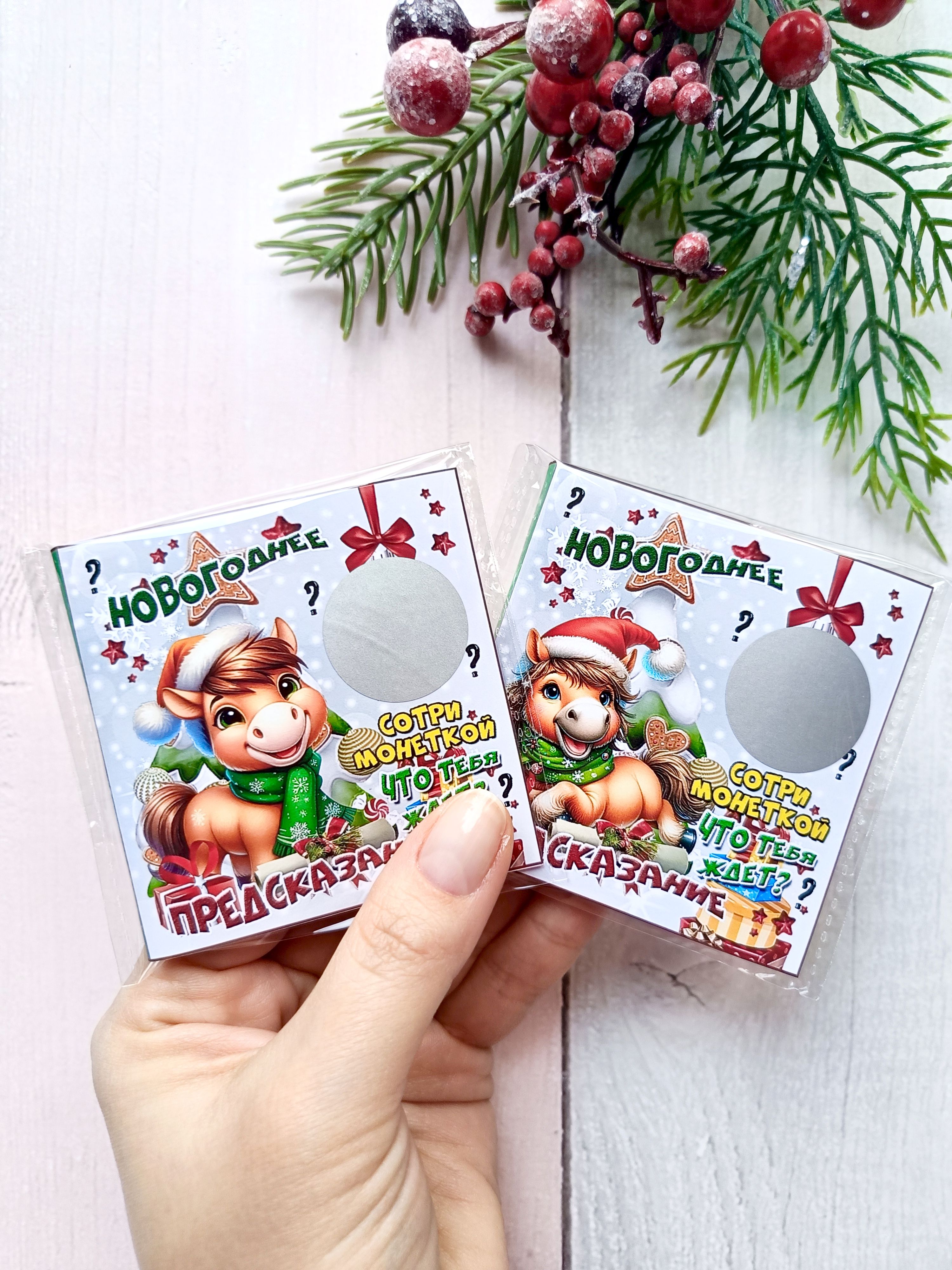 Подарочные открытки с предсказанием на Новый год с шоколадной плиткой внутри от бренда «Липомания» – это яркий и приятный презент, который создает праздничное настроение к Новому году. Такой подарок сочетает в себе интересное рандомное предсказание, которое можно прочитать стирая монеткой защитный слой, и сладкий сюрприз.