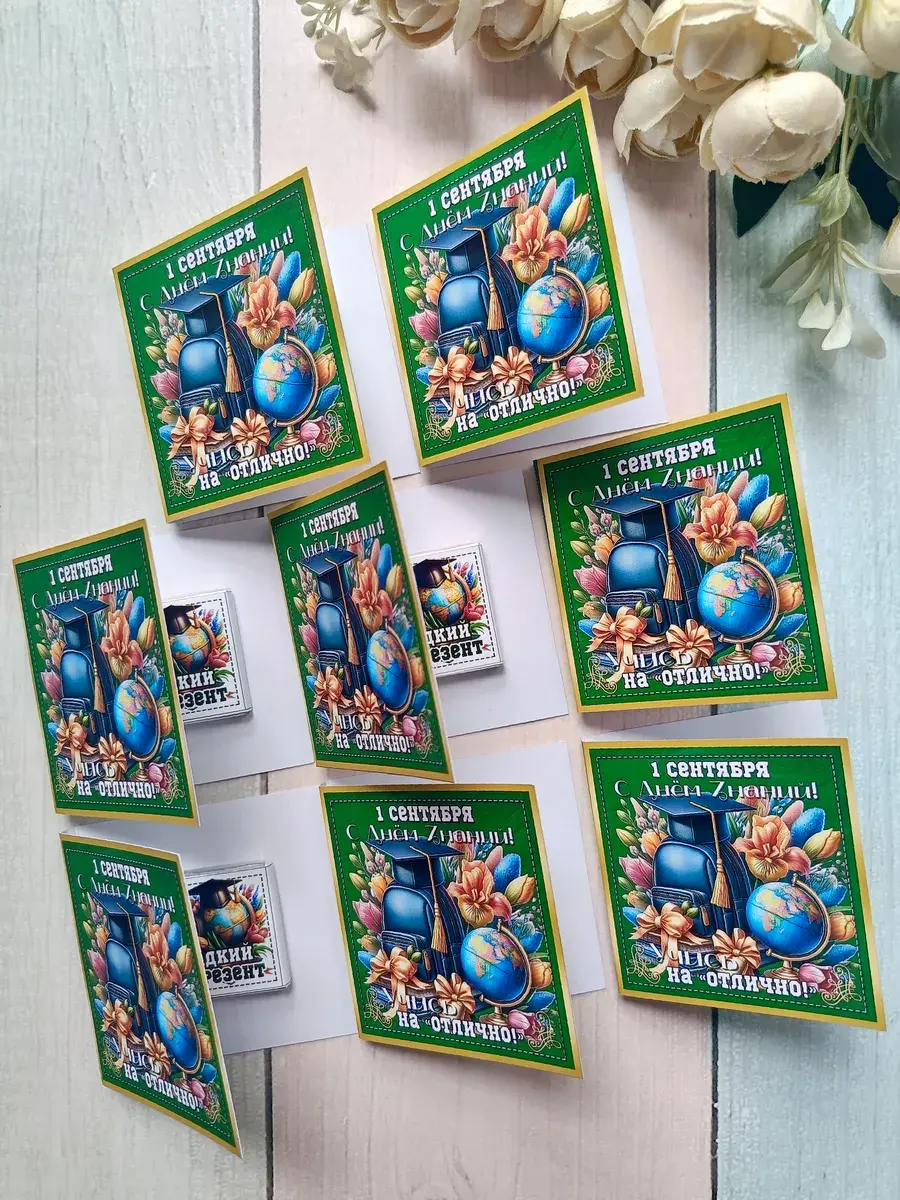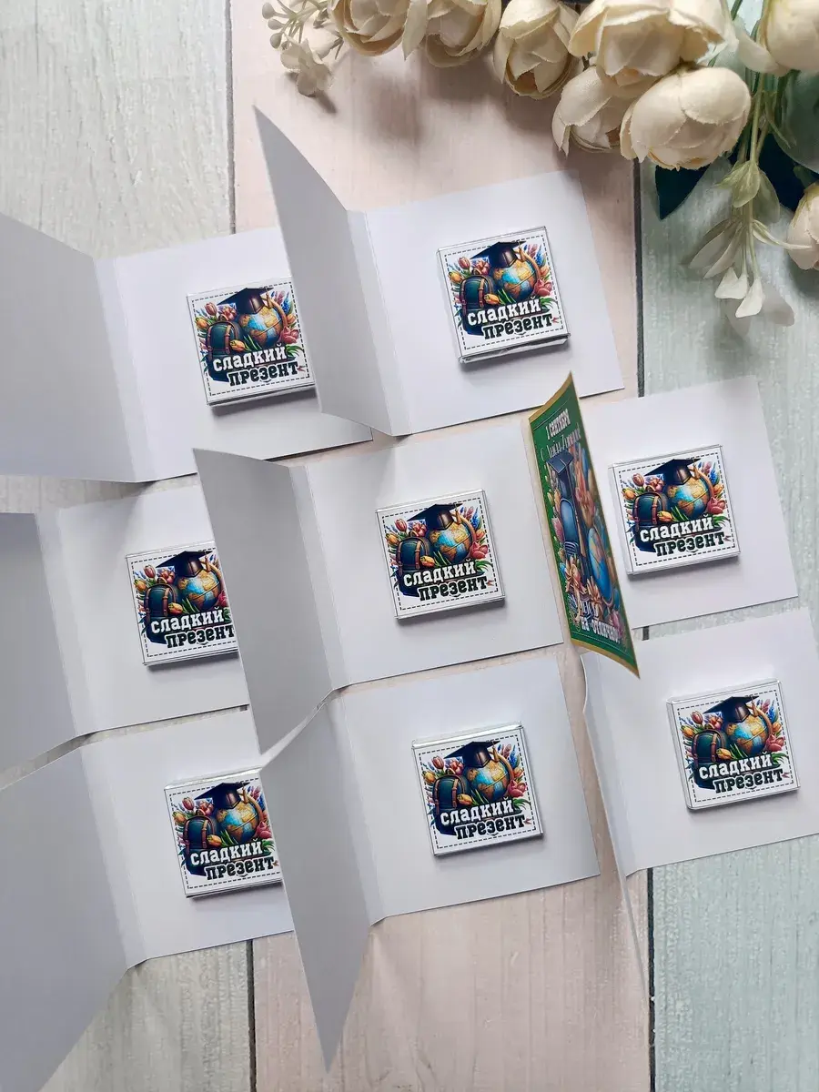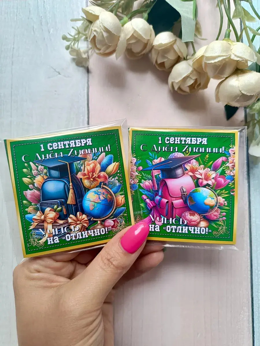 Подарочные открытки на 1 сентября с шоколадом внутри от бренда «Липомания» – это яркий и приятный презент для школьников, который создает праздничное настроение в День знаний. Такой подарок сочетает в себе теплые пожелания и сладкий сюрприз, что особенно нравится детям.