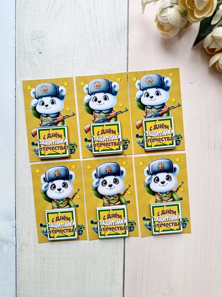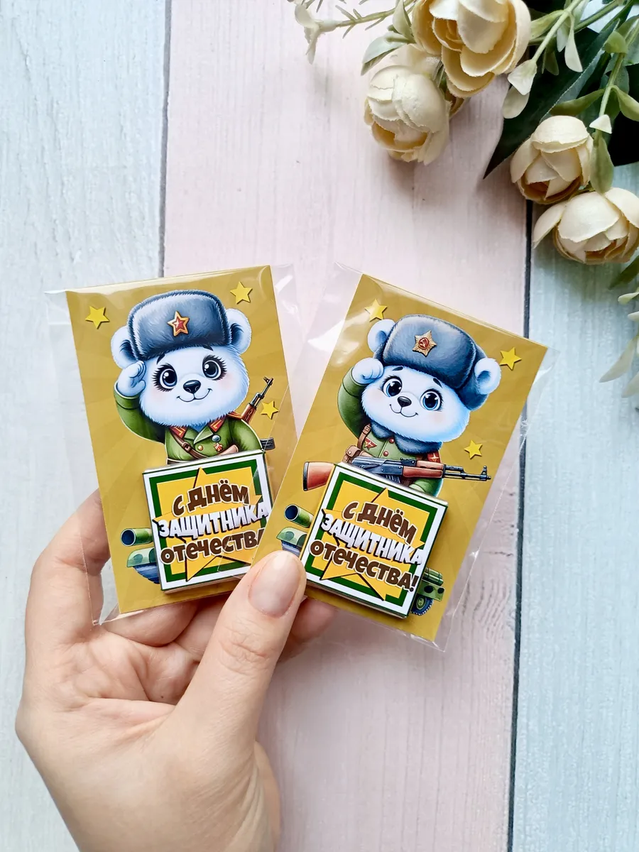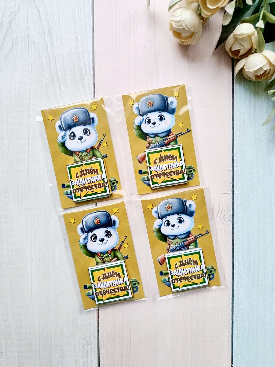 Подарочные открытки "С днем Защитника Отечества" на 23 февраля с плиткой шоколада от бренда «Липомания» – это яркий и приятный презент для школьников и дошкольников, который создаст праздничное настроение. Ведь такой подарок сочетает в себе теплые пожелания и сладкий сюрприз, что особенно нравится детям.