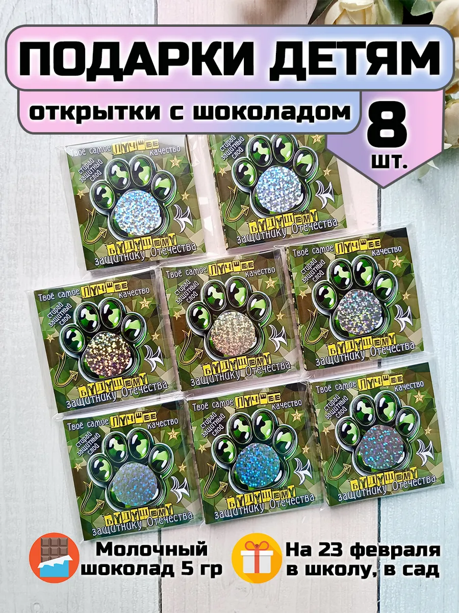 Набор сладких открыток идеально подойдет для садиков и школ. В коробке по 8 сладких открыток, поэтому легко заказать необходимое количество. А если презент останется его можно подарить сыну, брату, племяннику, друзьям детей, детям друзьям или внуку как небольшое поздравление и знак внимания, который послужит отличным угощением к чаю. Яркие открытки с добрыми пожеланиями не оставят никого равнодушным и шоколад добавит вкусную нотку.