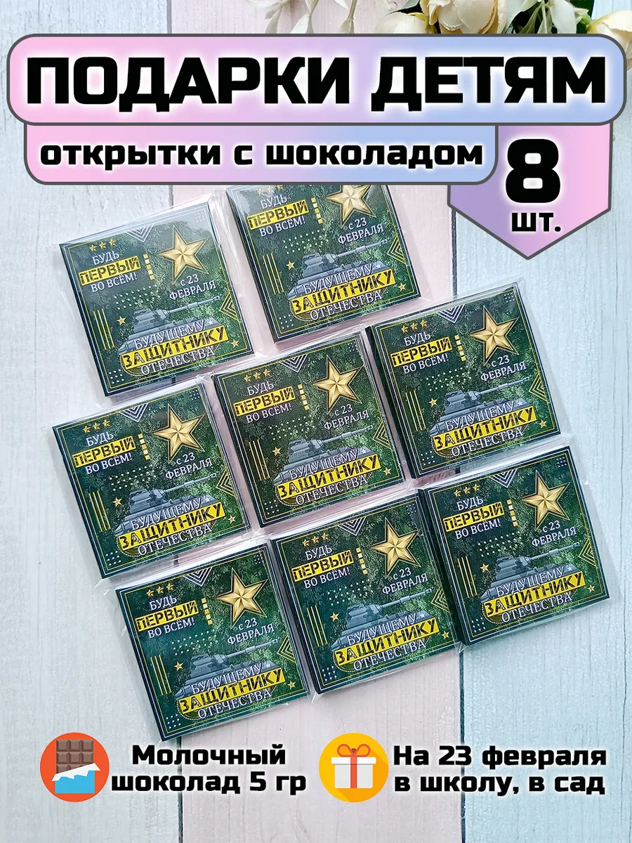 Набор сладких открыток идеально подойдет для садиков и школ. В коробке по 8 сладких открыток, поэтому легко заказать необходимое количество. А если презент останется его можно подарить сыну, брату, племяннику, друзьям детей, детям друзьям или внуку как небольшое поздравление и знак внимания, который послужит отличным угощением к чаю. Яркие открытки с добрыми пожеланиями не оставят никого равнодушным и шоколад добавит вкусную нотку.