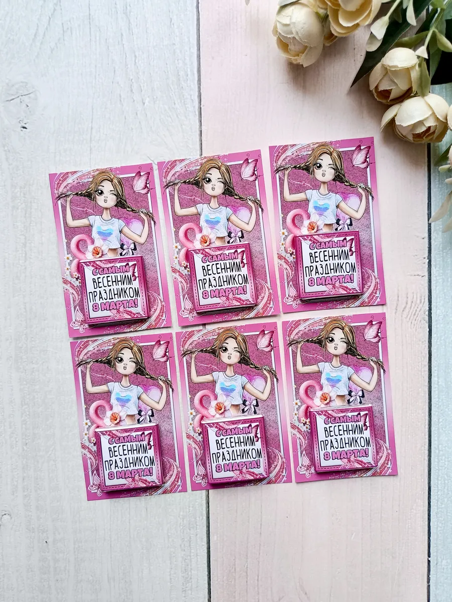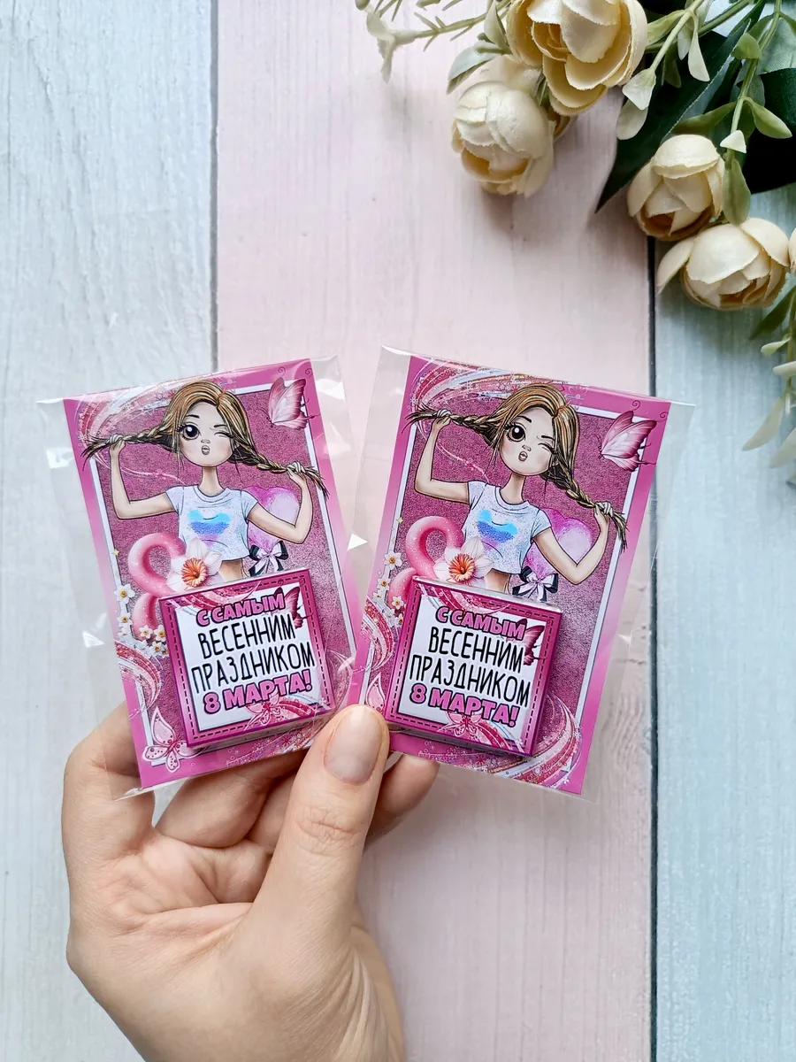Подарочные открытки "С самым весенним праздником" на 8 марта с плиткой шоколада от бренда «Липомания» – это яркий и приятный презент для школьников и дошкольников, который создаст праздничное настроение. Ведь такой подарок сочетает в себе теплые пожелания и сладкий сюрприз, что особенно нравится детям.