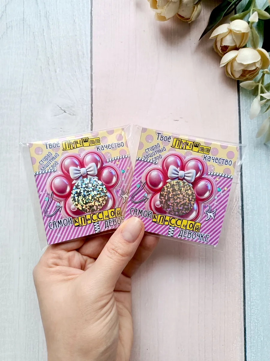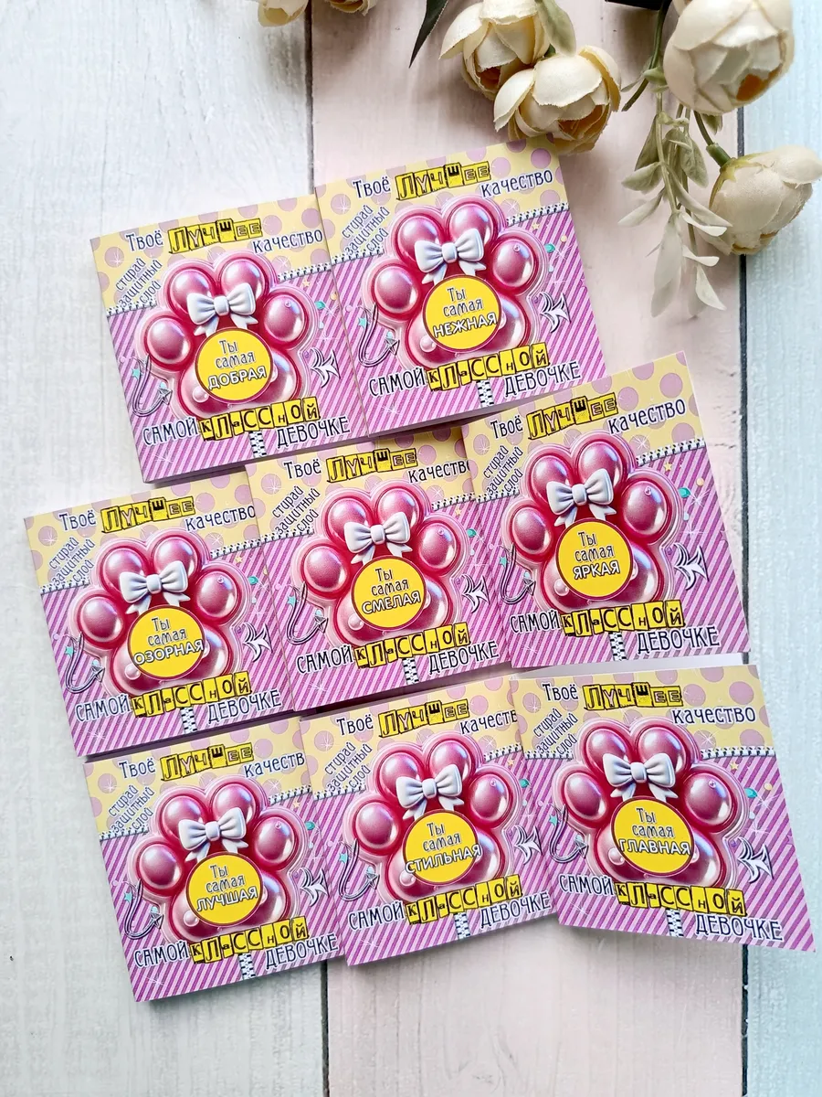 Подарочные открытки "Самой классной девочке" со скретч-наклейками на 8 марта с шоколадной плиткой внутри от бренда «Липомания» – это яркий и приятный презент, который создает праздничное настроение. Такой подарок сочетает в себе интересное рандомное качество и комплимент, которое можно прочитать сотря монеткой защитный слой, и сладкий сюрприз.