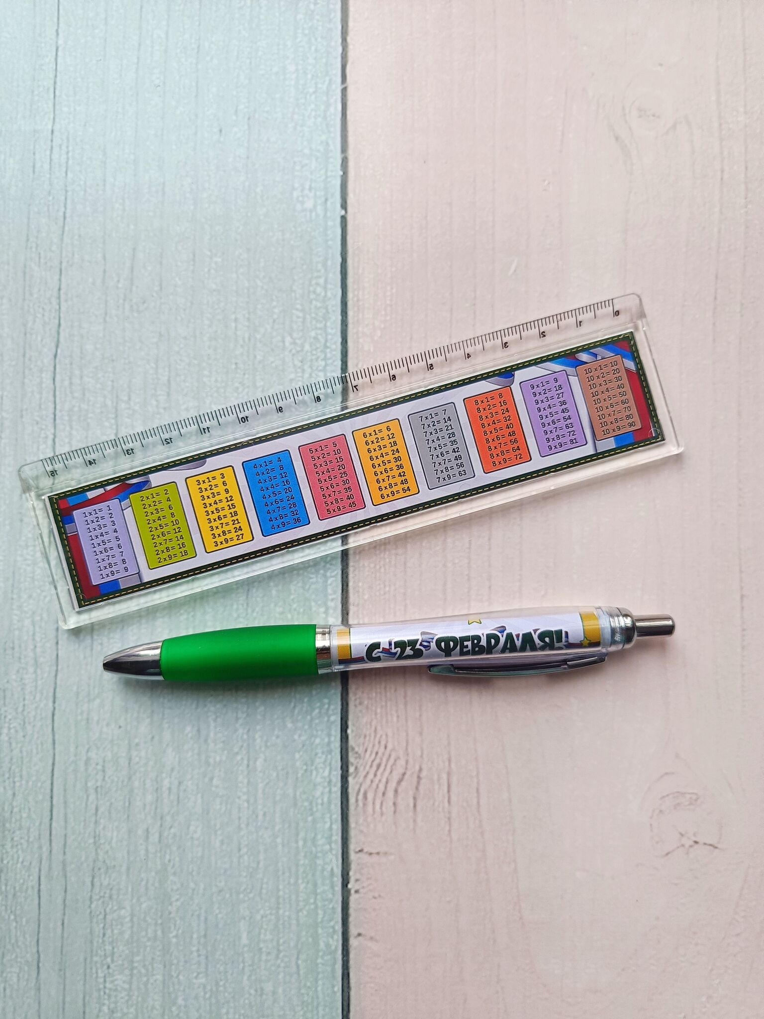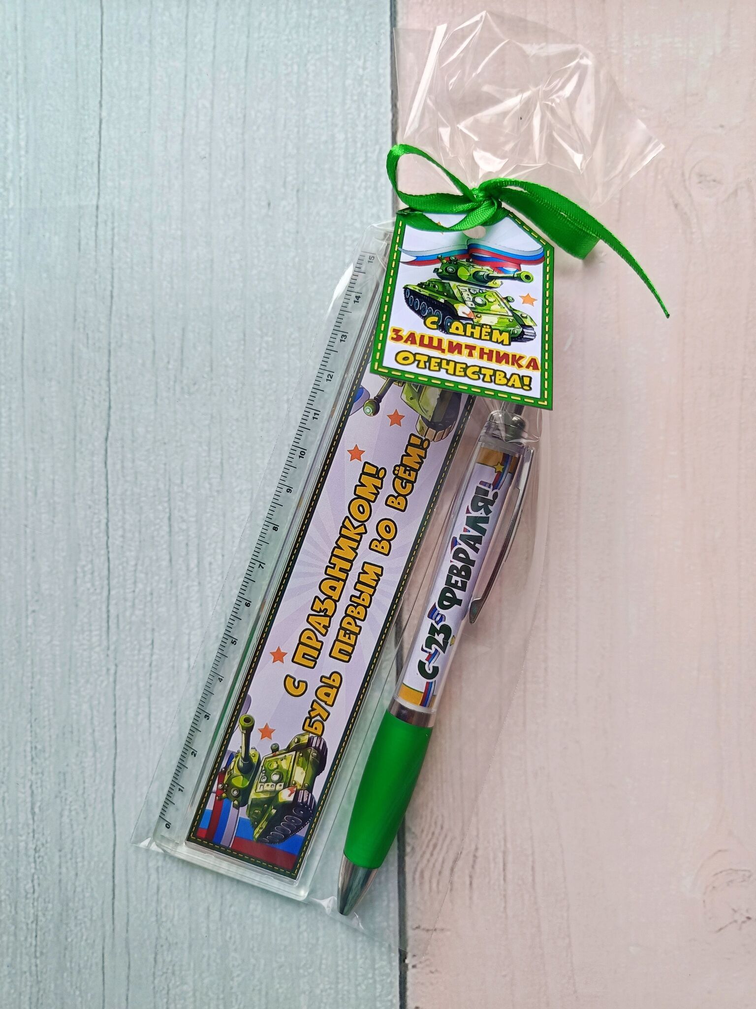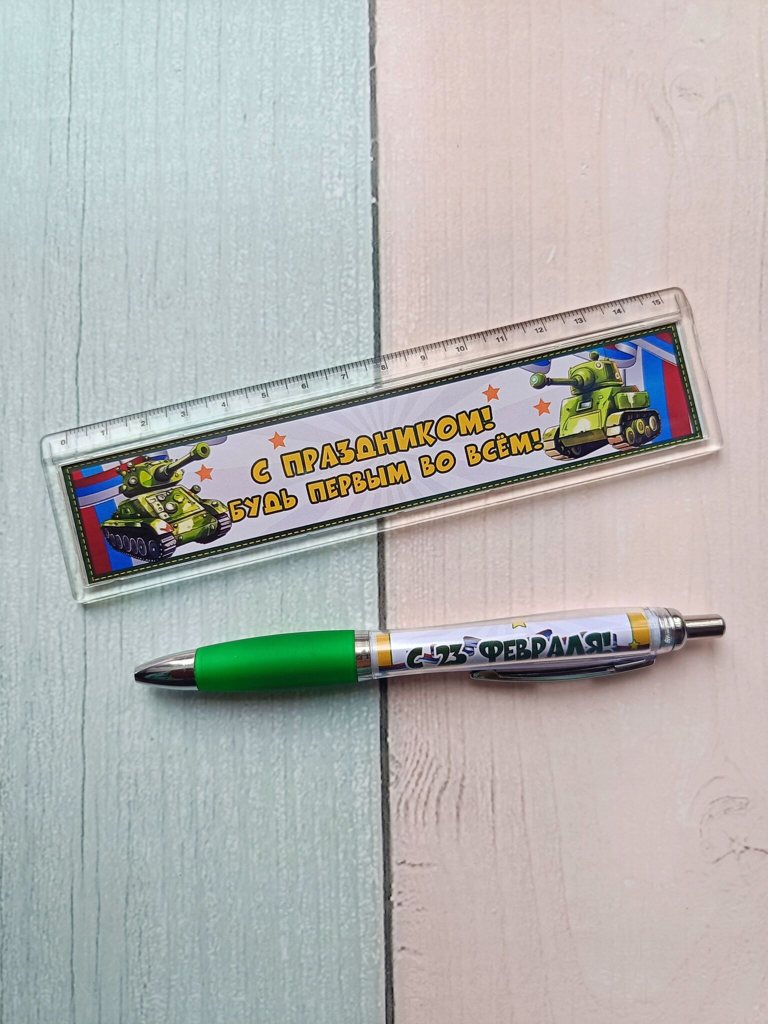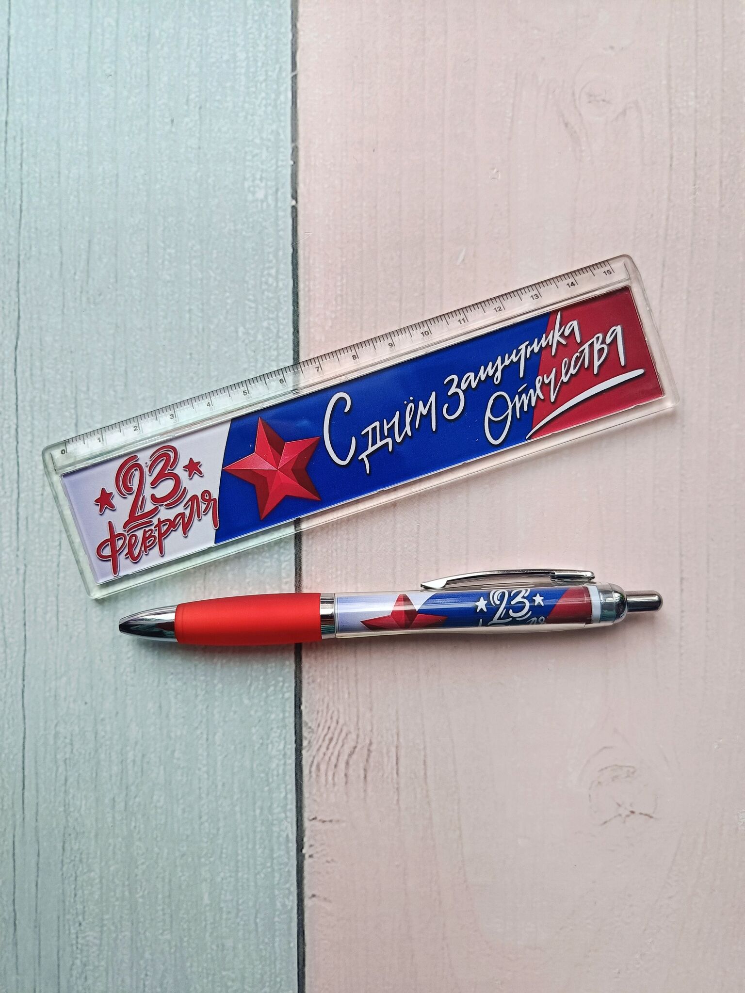 Подарочный набор "С днем защитника Отечества" от Липомания - это отличный выбор для тех, кто ищет оригинальный и полезный подарок. Набор включает в себя стильную ручку и линейку, украшенные праздничным дизайном, что делает их идеальным презентом для школьников, друзей и близких. Автоматическая ручка. Цвет пасты - синий, стержень имеет возможность замены. Линейка – 15 см идеально войдёт в любой пенал. Выполнена из прочного пластика. Яркая упаковка с бантиком и биркой добавит торжественности моменту вручения. Этот набор станет не только приятным сюрпризом, но и практичным помощником в учебе и повседневной жизни. Идеально для школьников.
