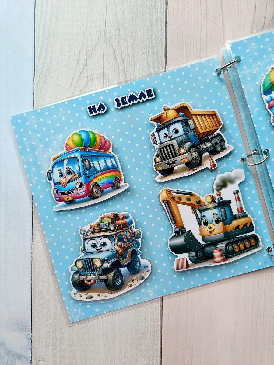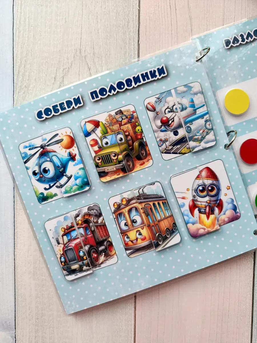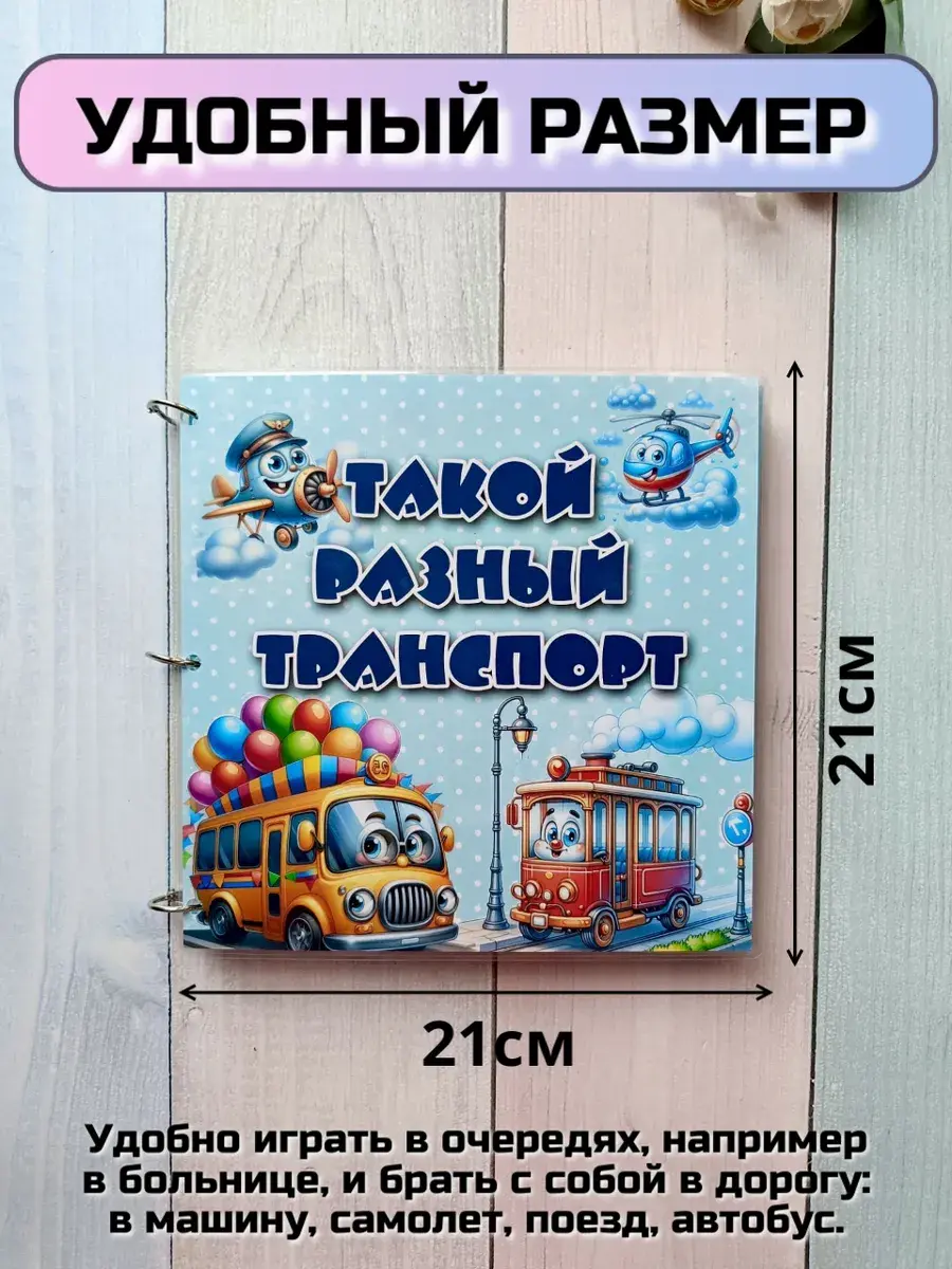 Книга-игрушка «Такой разный транспорт» с деталями на липучках от бренда «Липомания» для девочек и мальчиков развивают моторику, внимание усидчивость, логику, память и мышление ребёнка. В альбоме 4 страницы: транспорт на земле, на воде и на воздухе, картинка-пазл, половинки и разложи по цветам светофора. Все страницы скреплены тремя металлическими кольцами. В книге 34 деталей на липучках, которые удобно крепятся и легко отклеиваются, что делает процесс игры максимально комфортным для ребенка. Это отличная возможность для вашего малыша узнавать окружающий мир через игровую форму.