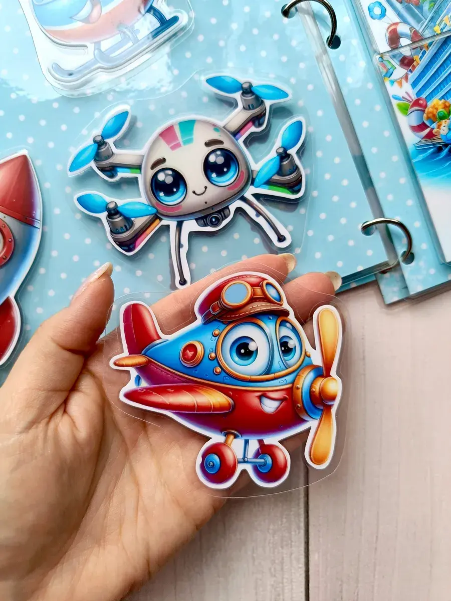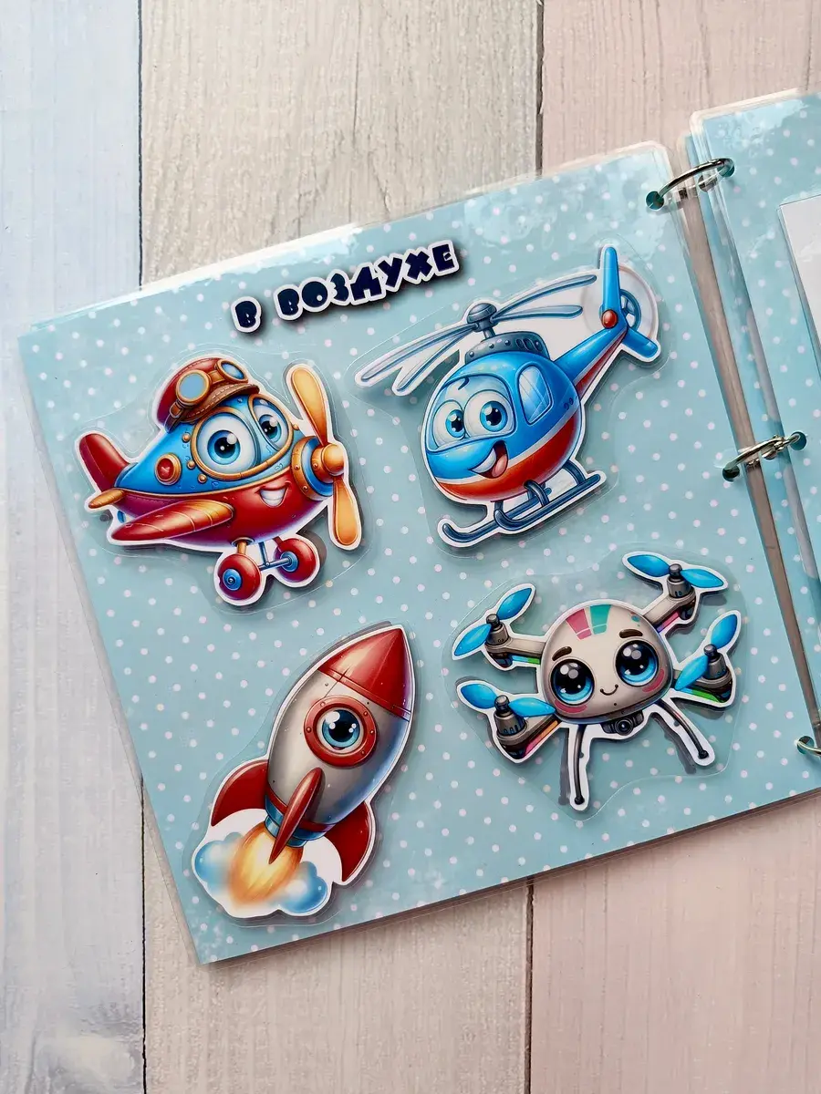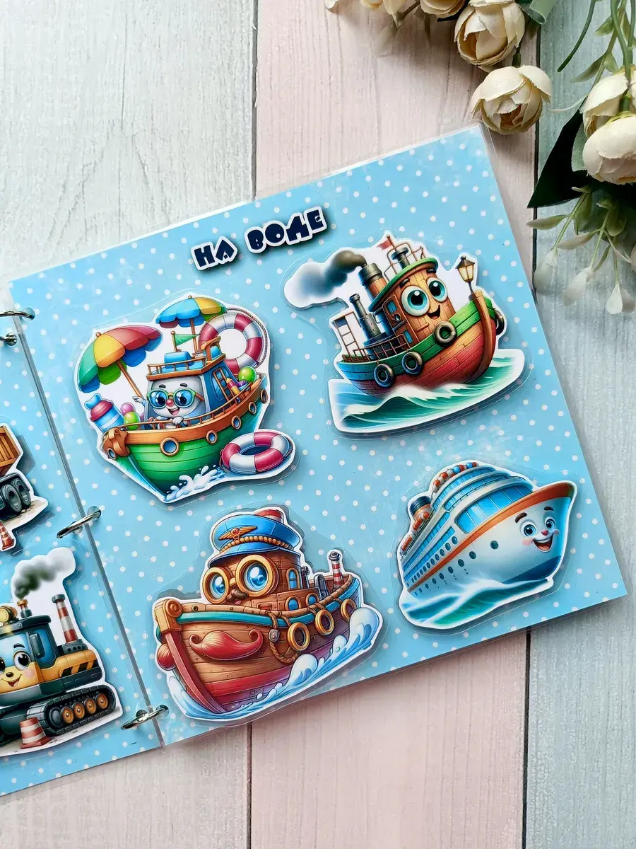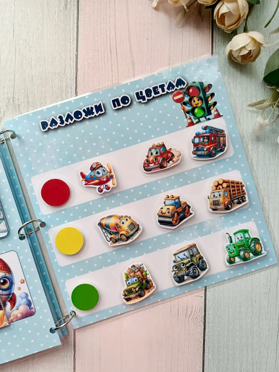 Книга-игрушка «Такой разный транспорт» с деталями на липучках от бренда «Липомания» для девочек и мальчиков развивают моторику, внимание усидчивость, логику, память и мышление ребёнка. В альбоме 4 страницы: транспорт на земле, на воде и на воздухе, картинка-пазл, половинки и разложи по цветам светофора. Все страницы скреплены тремя металлическими кольцами. В книге 34 деталей на липучках, которые удобно крепятся и легко отклеиваются, что делает процесс игры максимально комфортным для ребенка. Это отличная возможность для вашего малыша узнавать окружающий мир через игровую форму.