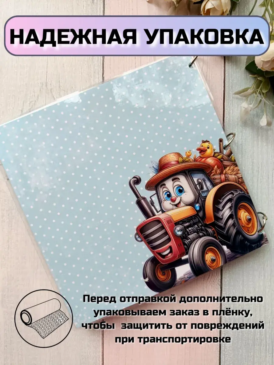 Формат: 21*21см. Изготовлен развивающий альбом из плотной бумаги 250 гр и заламинированы плёнкой 175 мкм. Благодаря этому детали не рвутся, не бояться воды, слюней и других загрязнений. Достаточно протереть сухой или влажной салфеткой, делая её многоразовой развивашкой. Можно играть снова и снова.