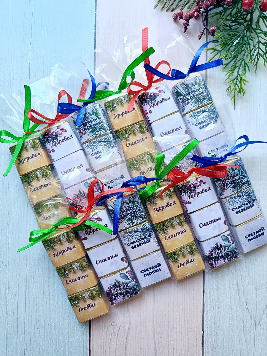 В коробке 9 шт. Каждый презент в индивидуальной упаковке и с бантиком из атласной ленты.